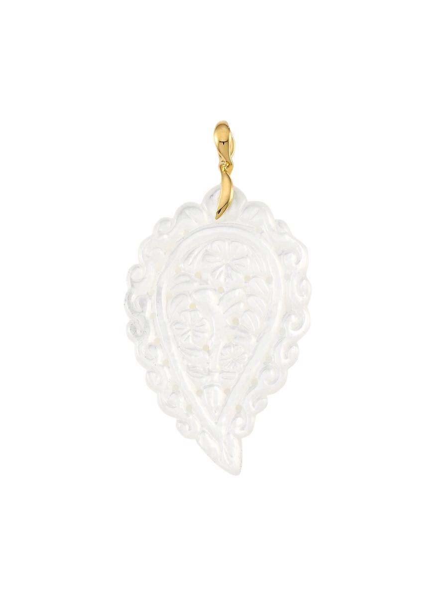 Lustrous white mother-of-pearl in an intricate hand-carved leaf shape, ideal for adding a soft, natural accent to the brands Eight-Chain necklace or a thin leather cord. White mother-of-pearl 18K yellow gold Made in Germany SIZE Length, about 2.57 Please note: Chain sold separately. Fine Jewelry - Designer Jewelry A > Tamara Comolli > Saks Fifth Avenue > Barneys. Tamara Comolli. Color: Yellow Gold.