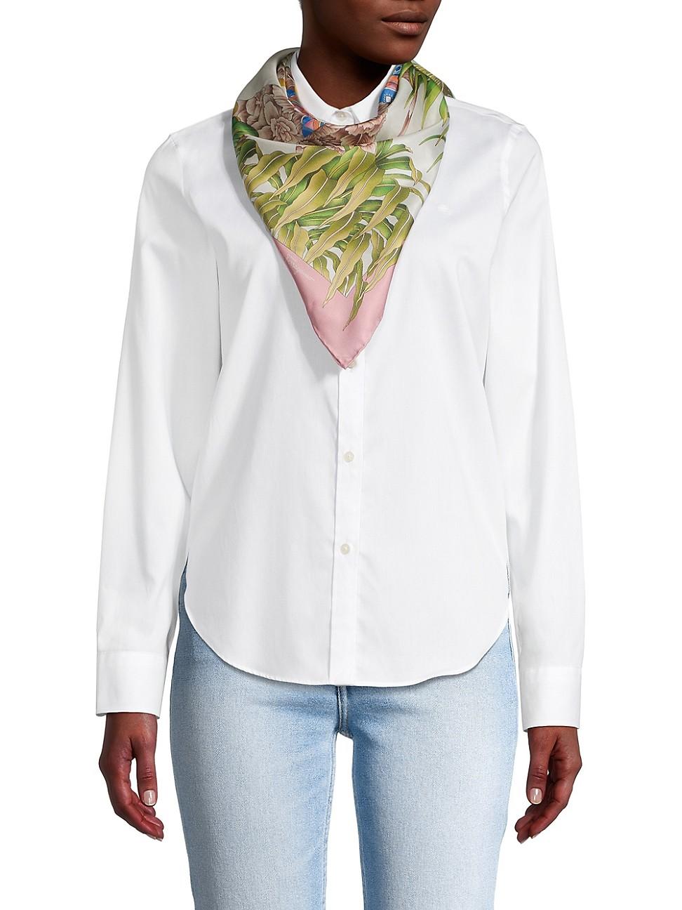 Decorated in the houses eye-catching India print exemplifying a traditional symbol of divinity and royalty, FERRAGAMOs square scarf is crafted of luxurious Italian silk. Silk Made in Italy SIZE 35.5W x 35.5L ABOUT THE BRAND Italian designer Salvatore Ferragamo began his journey in 1927 in Italy with a vision of creating the worlds most beautiful shoes. Since its inception, FERRAGAMO has expanded to include clothing, accessories and beauty under the creative direction of Maximilian Davis-who brings a minimalist-meets-maximalist aesthetic to the brand. Soft Accessories - Scarves > Ferragamo > Saks Fifth Avenue > Barneys. FERRAGAMO. Color: Avorio Rose.