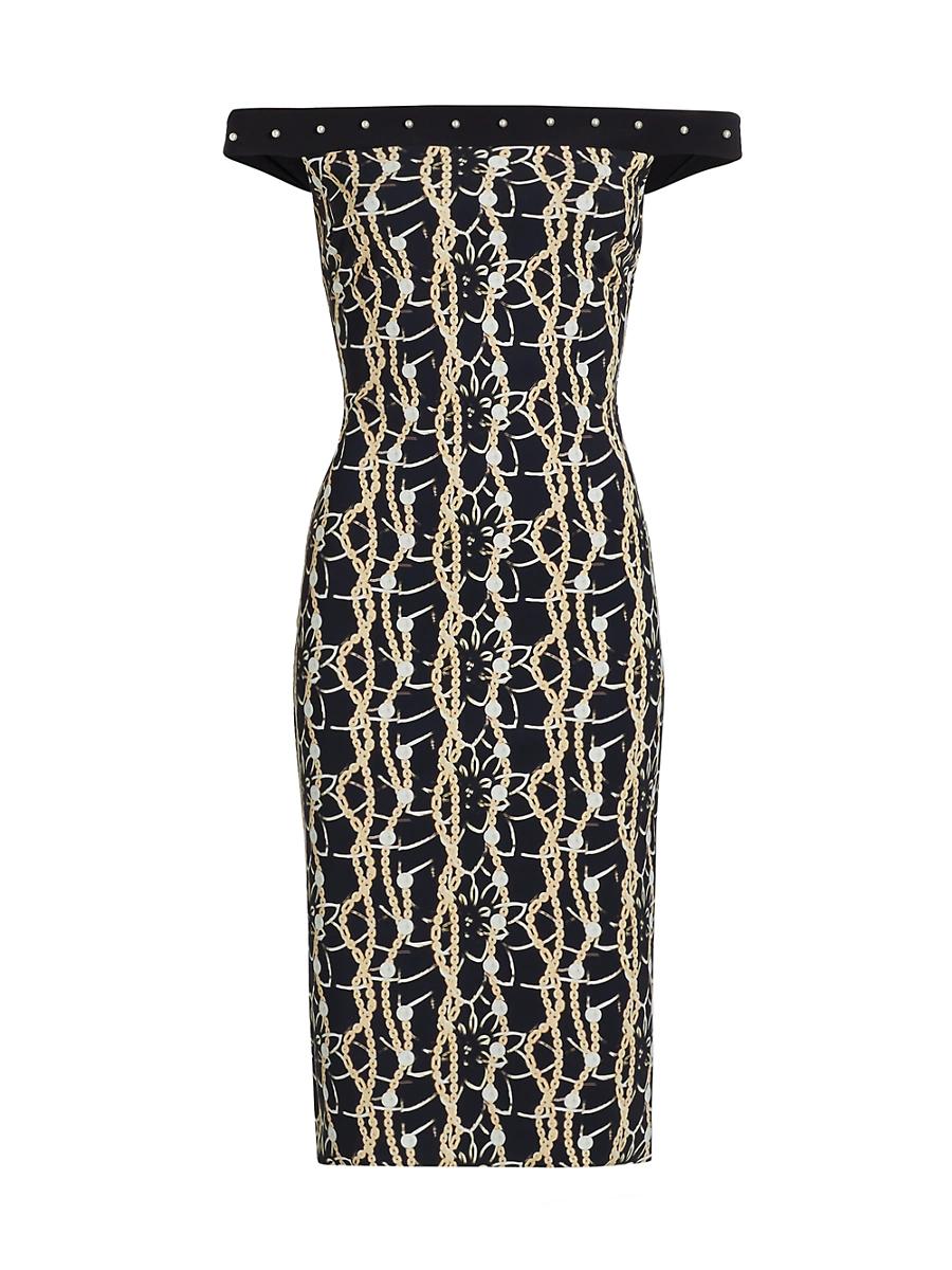 This sleeveless, off-the-shoulder Inger cocktail dress by Chiara Boni La Petite Robe features elegant faux pearl embellishments for a touch of sophistication. Designed without a zipper, this seamless and polished look is finished with a status print. Off-the-Shoulder neck Sleeveless Pulls over 72% nylon/28% elastane Hand wash Made in Italy SIZE & FIT About 37 from shoulder to hem Model measurements: 510 tall Model is wearing a US size 4 ABOUT THE BRAND Self-taught designer Chiara Boni began her career creating ready-to-wear for several Italian labels before launching Chiara Boni La Petite Robe in 2007. With a focus on flattering the female form, her elegant and versatile styles have gained a loyal following. Dress Collections - La Petite Robe Di Chiara > Chiara Boni La Petite Robe > Saks Fifth Avenue > Barneys. Chiara Boni La Petite Robe. Color: Chic Urban. Size: 18.
