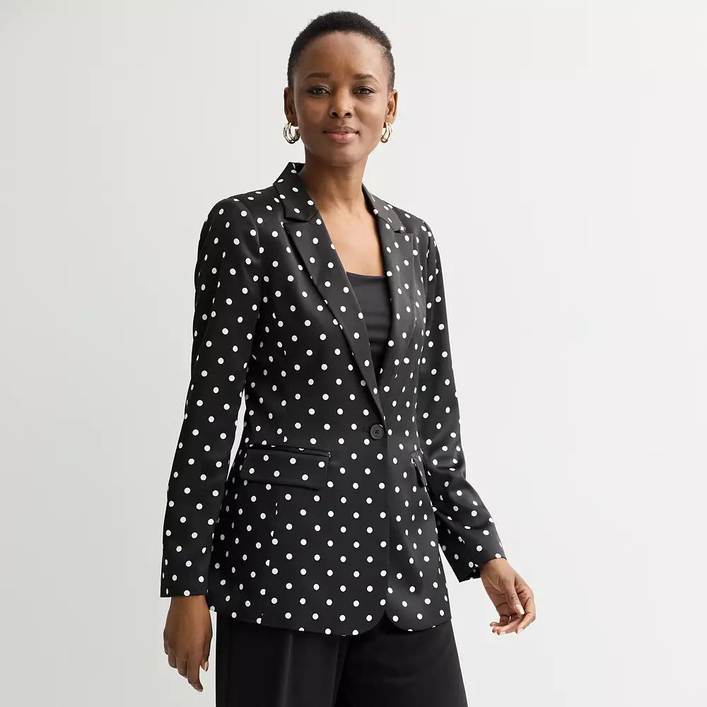 You will look incredibly stylish in this women's INTEMPO long boyfriend blazer.Click on this WOMEN'S GUIDE to find the perfect fit and more!You will look incredibly stylish in this women's INTEMPO long boyfriend blazer.Click on this WOMEN'S GUIDE to find the perfect fit and more!FEATURES Slim tailored fit: Accentuates the waist for a polished, flattering silhouette Smooth Stretch Fabric: Combines comfort with a sleek, structured look. Versatile Style: Perfect for both professional and elevated casual wear. 2 front pockets 1-button front Long sleeves Notchneck Fully linedFIT & SIZING Classic fit 31 1/2-in. length from shoulder to hemFABRIC & CARE Polyester, spandex Polyester lining Machine wash and tumble dry low Imported Size: X Large. Color: Polka Dot. Gender: female. Age Group: adult. Pattern: Leopard Print.