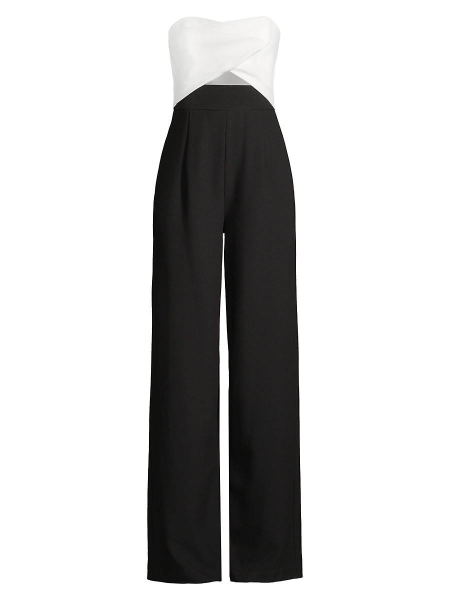Cut in a sleeveless silhouette, this Black Halo Jada jumpsuit showcases a cutout at the front with a wide-leg pant. Sleeveless Back-zip closure 77% polyamide/16% viscose/7% elastane Dry clean Imported SIZE & FIT About 22.5 from shoulder to hem Model measurements: 510 tall Model is wearing a US size Small. Dress Collections - Contemporary Evening > Black Halo > Saks Fifth Avenue > Barneys. Black Halo. Color: Black Pearl. Size: 12.