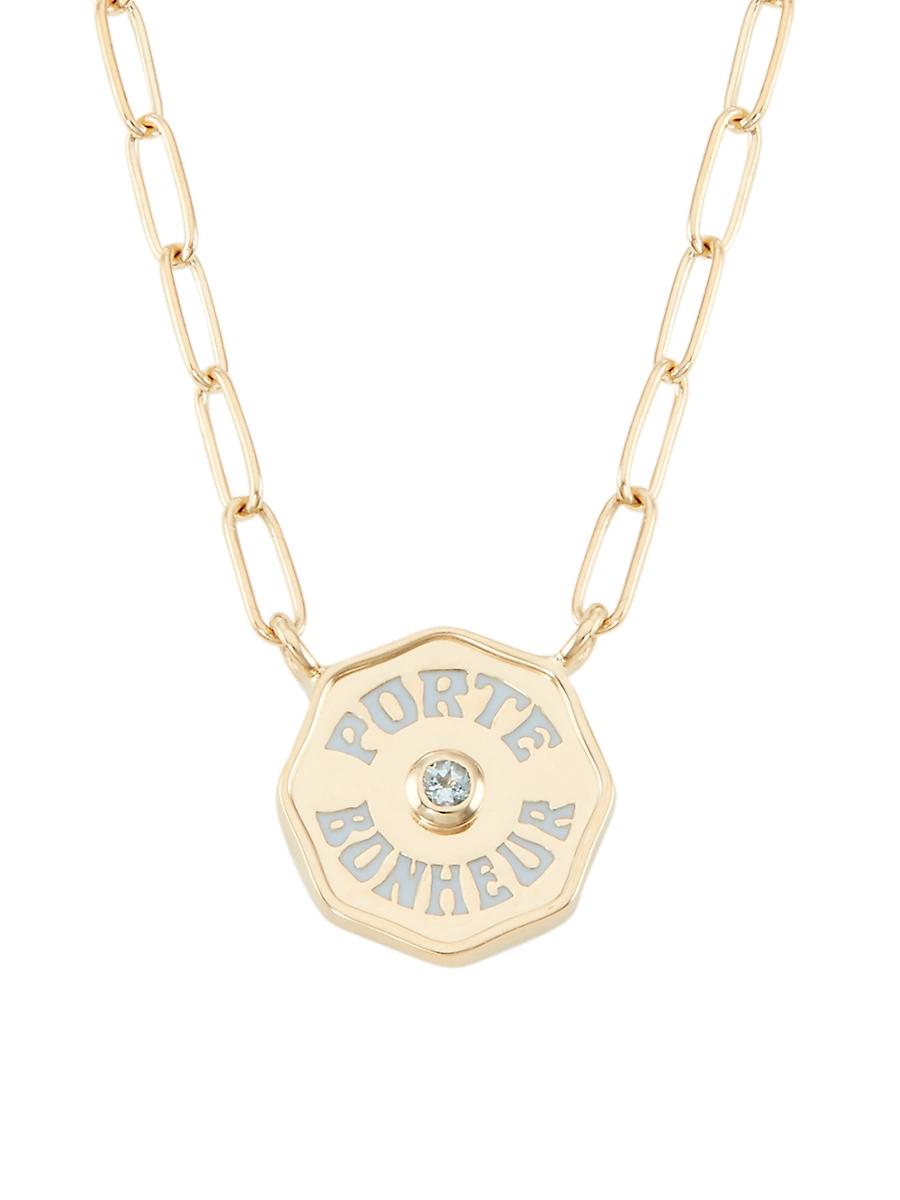 From the Je Porte Bonheur collection. This stunning paper clip chain necklace by Marlo Laz is crafted of luminous 14K yellow gold and flaunts a signature pendant with an aquamarine center. Aquamarine, 0.015 TCW 14K yellow gold Lobster clasp Spot clean Made in USA SIZE Length, about 15. Fashion Jewelry - Fashion Designer > Marlo Laz > Saks Fifth Avenue > Barneys. Marlo Laz. Color: Aquamarine.