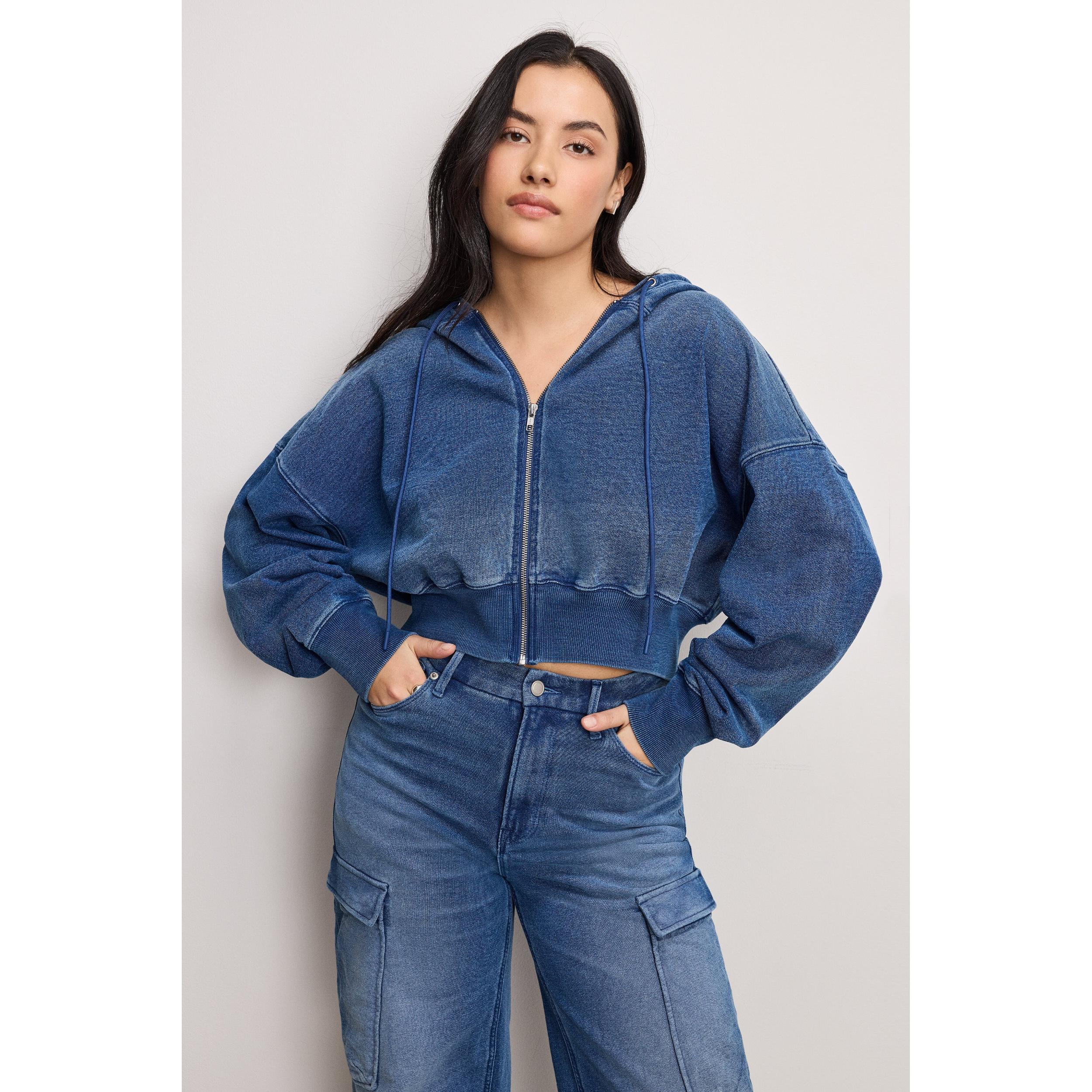 Americas Favorite Skinny Jean! Say hello to your new favorite: the Jeanius Zip Up Hoodie. With its classic cut, front zipper, and roomy pockets to stash your essentials, its the perfect blend of style and comfort. It looks like denim but feels like your softest sweats, its the best of both worlds cool and cozy, all in one hoodie. Fixed hood Front zipper closure Front pockets Long sleeves Fleece terry fabric Fabric: 100% Cotton | Womens Jeanius Zip Up Hoodie (Indigo, Size 5XL