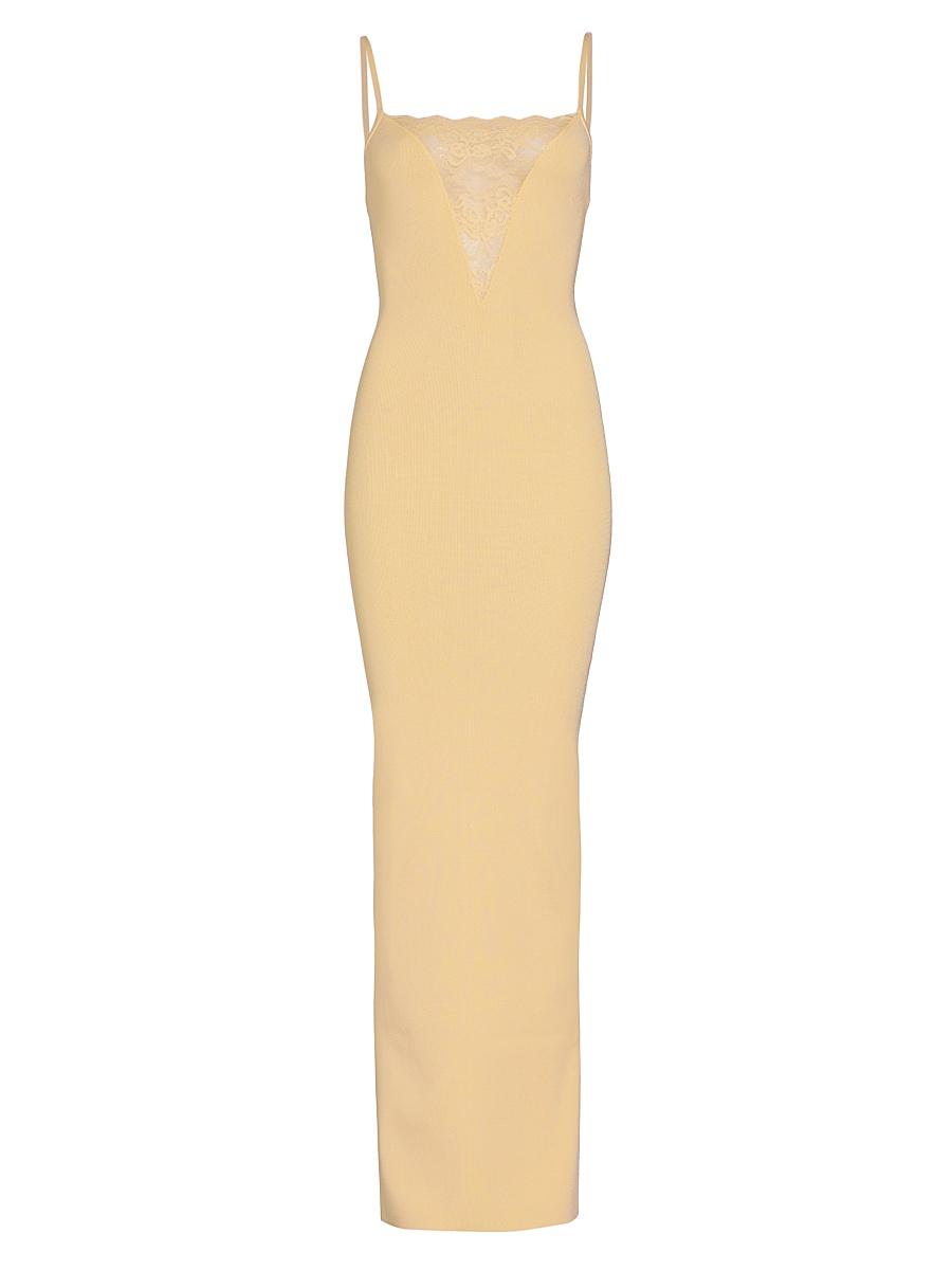 Crafted of a fine knit, Ronny Kobos Jenae sleeveless maxi dress features a bandeau neck, back slit, and lace trim. Bandeau neck Spaghetti straps Sleeveless Back slit Pulls over 100% viscose Dry clean Imported SIZE & FIT About 60 from shoulder to hem Model measurements: 510 tall Model is wearing a US size 4. Contemporary Sportswear - Trend > Ronny Kobo > Saks Fifth Avenue > Barneys. Ronny Kobo. Color: Buttercream. Size: Large.