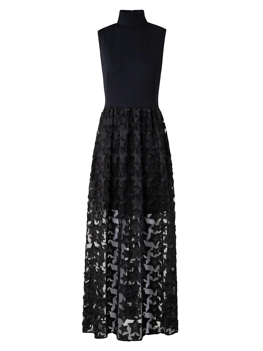 This Akris punto maxi dress pairs a stretch jersey bodice with a 3D star embroidered tulle skirt for a pieced effect. Mock turtleneck Sleeveless Gathered circle skirt Back zip closure 100% polyester Lining: 100% polyester Trim: 86% nylon/14% elastane Dry clean Imported SIZE & FIT About 60 from shoulder to hem Model measurements: 510 tall Model is wearing a US size 4 ABOUT THE BRAND Founded in 1922 in St. Gallen, Switzerland, the name Akris was derived from founder Alice-Kriemler Schochs initials. Akris punto was later launched in 1995 with a relaxed, understated mindset. With a range of contemporary looks including architectural silhouettes, graphic prints and colorblocking, each piece is finished with an athletic edge. Designer Lifestyle - Akris Punto > Akris Punto > Saks Fifth Avenue > Barneys. Akris punto. Color: Black. Size: 8.