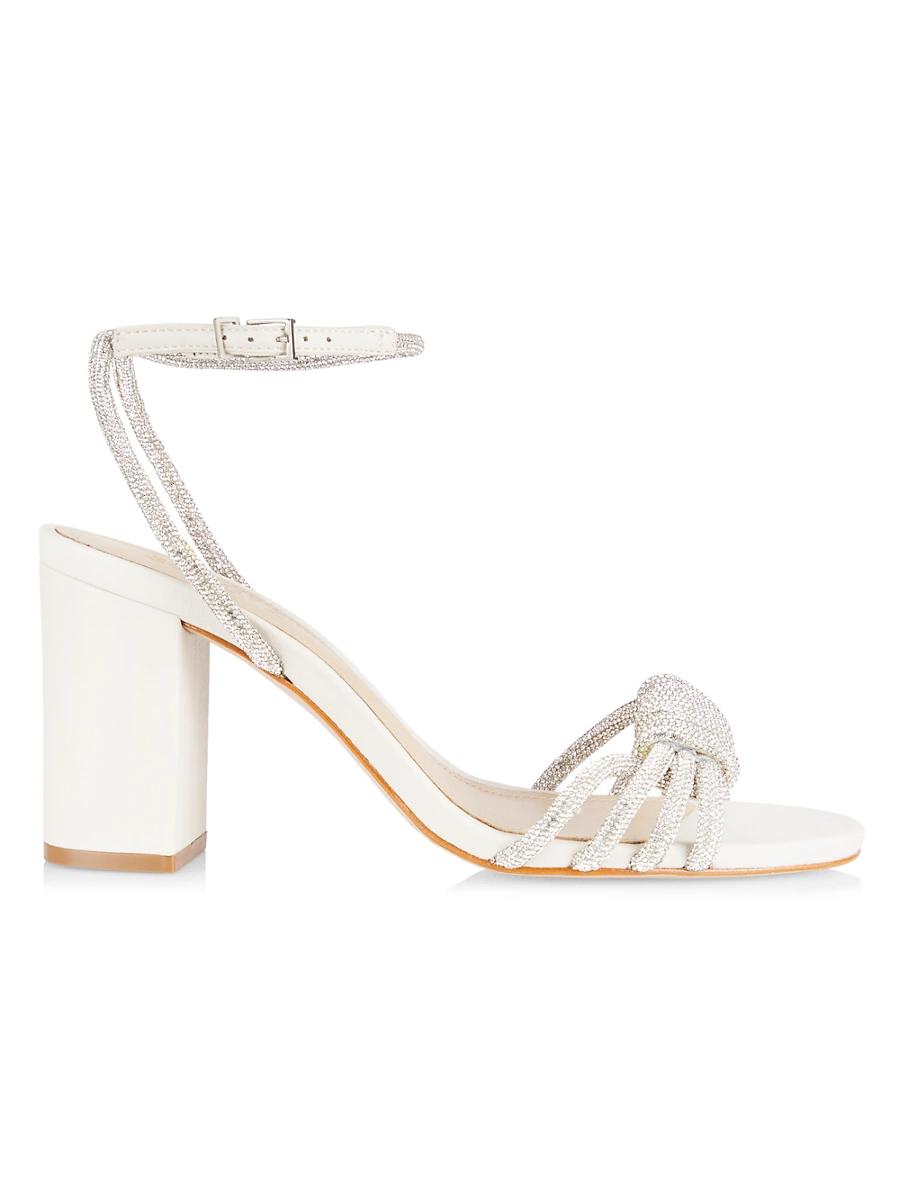 Schutzs Jewell sandals flaunt a crystal-embellished knotted strap and a chunky block heel. Synthetic upper Open toe Buckle closure Lining: Synthetic Leather sole Imported SIZE Block heel, 3.5 (90mm). Womens Shoes - Contemporary Shoes > Schutz > Saks Fifth Avenue > Barneys. Schutz. Color: Crystal Pearl. Size: 9.