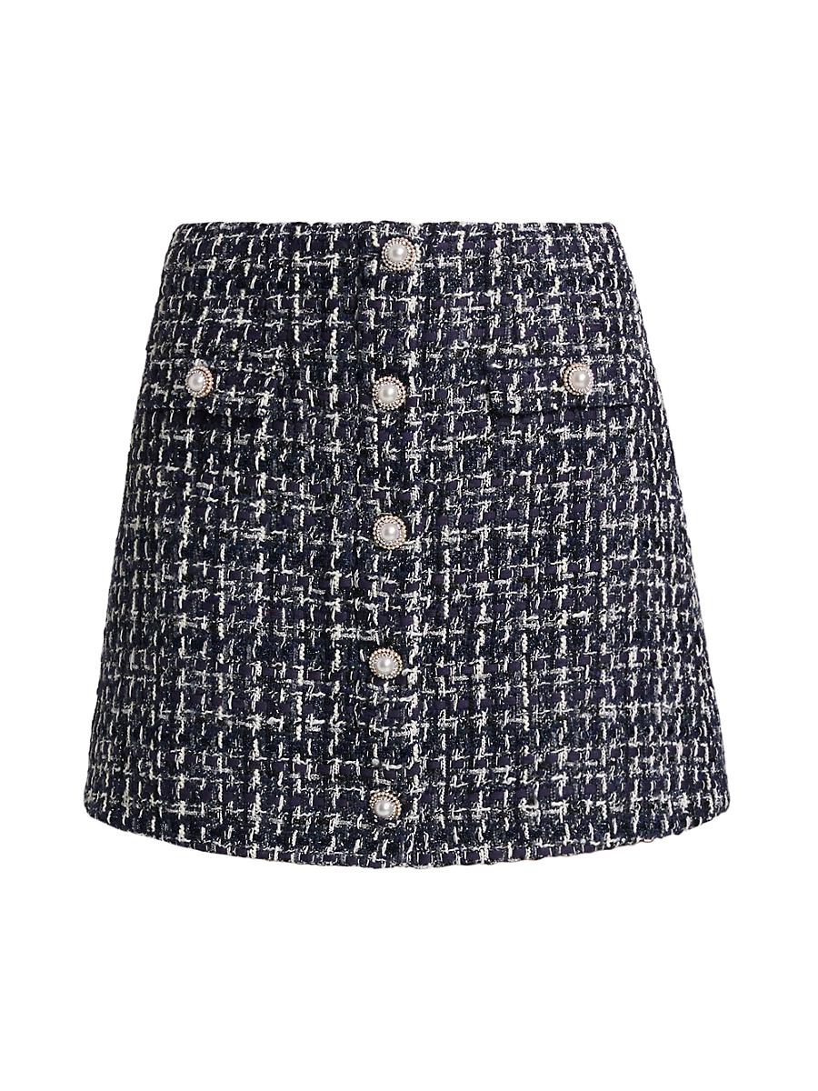 This Jinny tweed miniskirt from Generation Love is designed with an A-line silhouette, a shimmery finish, and metallic-trimmed lustrous imitation pearl buttons. Side button-through flap pockets Concealed back zip, hook-and-eye closure 34% cotton/27% acrylic/18% polyester/12% viscose/5% metallized polyester/4% nylon Lining: 95% polyester/5% elastane Dry clean Imported SIZE & FIT About 15 long Model measurements: 510 tall Model is wearing a US size 4. Contemporary Sportswear - Casual Separates > Generation Love > Saks Fifth Avenue > Barneys. Generation Love. Color: Navy White Multi. Size: 4.