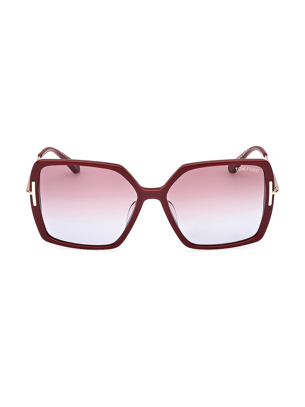 Tom Fords Joanna sunglasses feature an oversized butterfly silhouette with metal T logo at the temples and soft gradient lenses. Gradient lenses Case and cleaning cloth included Acetate/metal Made in Italy SIZE 59mm lens width 15mm bridge width 140mm temple length ABOUT THE BRAND After 10 years of serving as the Creative Director for several international luxury fashion houses, Tom Ford launched his own line of optical frames, sunglasses and beauty in 2005. The following year he debuted menswear, and in 2010, womens ready-to-wear. His sleek, tailored aesthetic has since catapulted him to mega-brand status. Soft Accessories - Sunglasses > Tom Ford > Saks Fifth Avenue > Barneys. TOM FORD. Color: Shiny Bordeaux.