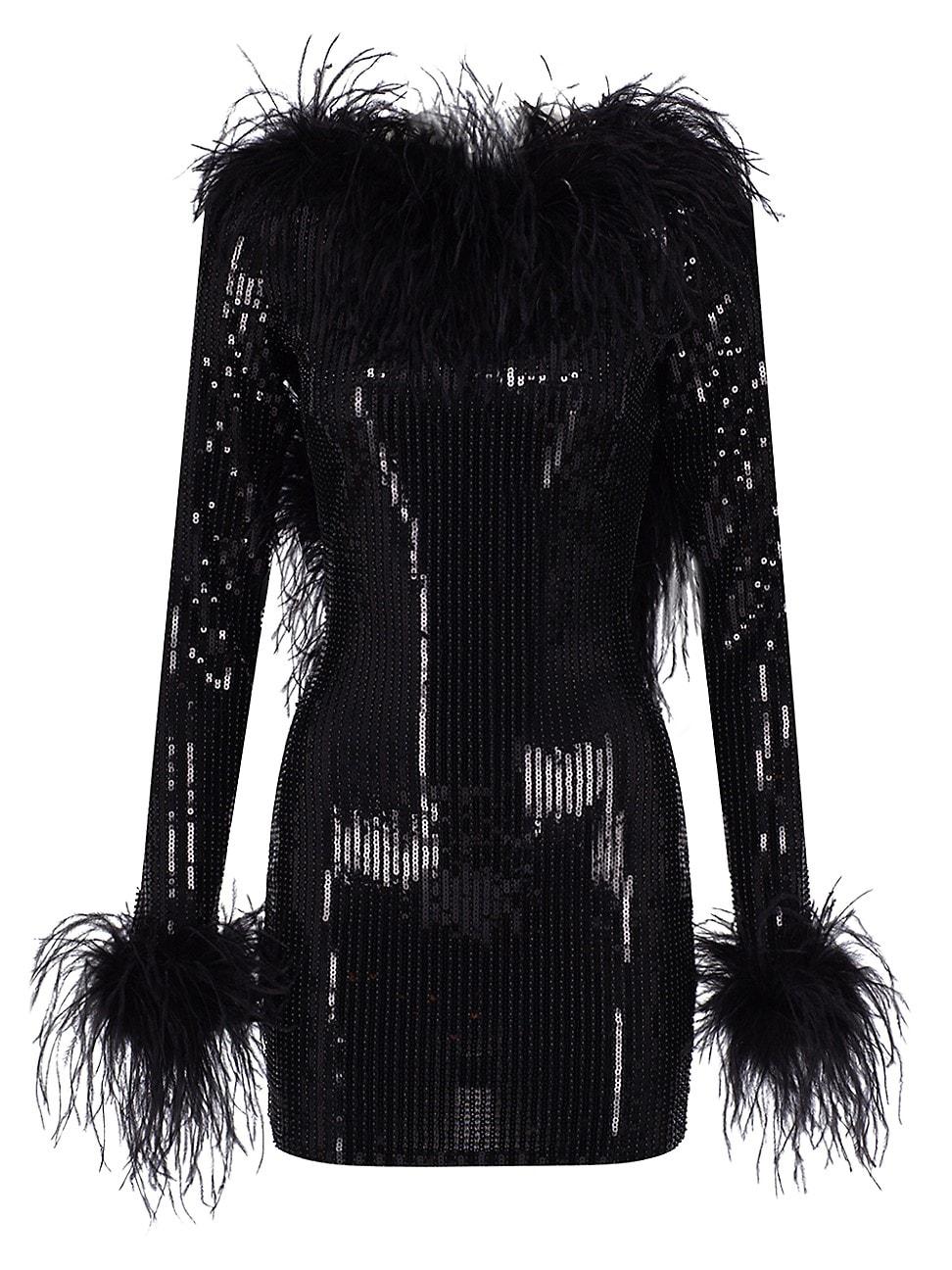 Styled with shimmering sequins, the Juises backless minidress from New Arrivals is designed with plush ostrich feathers around the collar and cuffs. Feather-trim bateau neckline Long sleeves, feather cuffs Open V-back Concealed back zip closure 100% polyester Trim: 100% ostrich feathers Fur type: dyed real ostrich feather Fur origin: Spain Dry clean Imported SIZE & FIT About 34 from shoulder to hem Model measurements: 510 tall Model is wearing a US size 4. Dress Collections - Contemporary Evening > The New Arrivals Ilkyaz Ozel > Saks Fifth Avenue > Barneys. The New Arrivals Ilkyaz Ozel. Color: Film Noir. Size: 0.