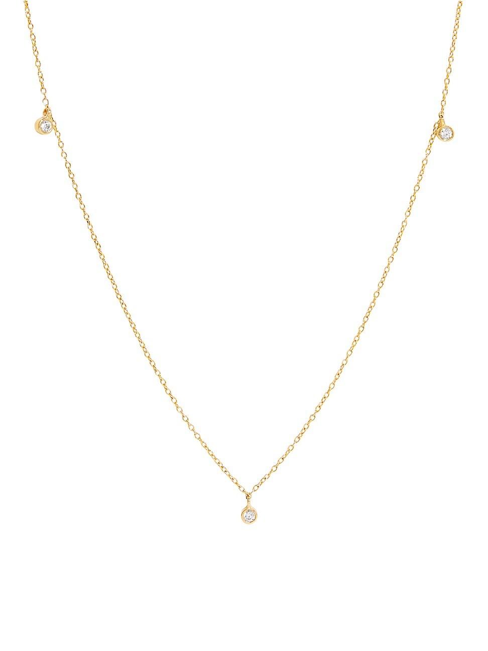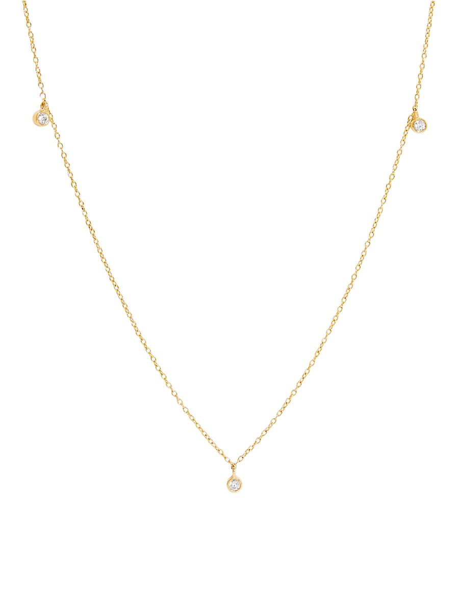 From the Juliet Collection. Crafted of 14K yellow gold, this minimalist necklace by brook & york features three floating round lab-grown diamond charms on a delicate curb chain. Lab-grown diamonds,.02 tcw 14K yellow gold Lobster clasp Imported SIZE Pendant size, about 0.2 L Adjustable chain, about 16-18 L. Fashion Jewelry - Trend Jewelry > Brook & York > Saks Fifth Avenue > Barneys. brook & york. Color: Gold.