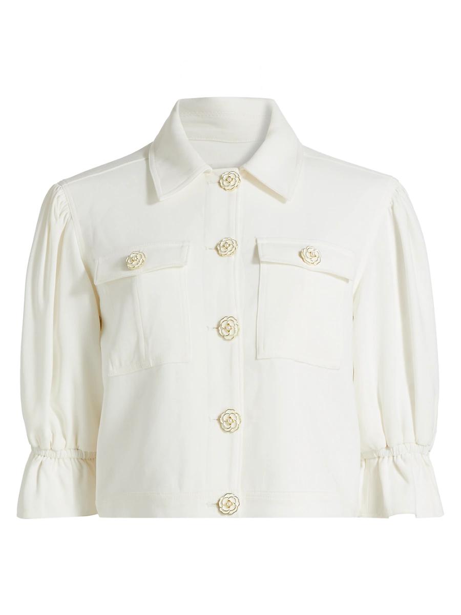 Cinq Septs Julieta jacket features a collared neckline, elbow-length ruched puff sleeves, flap pockets, and enameled floral buttons. Spread collar Button flap pockets Elbow-length ruched puff sleeves Button-front closure 69% triacetate/31% polyester Lining: 100% polyester Dry clean Imported SIZE & FIT About 20 from shoulder to hem Model measurements: 510 tall Model is wearing a US size Small ABOUT THE BRAND Inspired by the radiant, magical hours between 5 and 7 PM-which is what the labels French name translates to-founder Jane Siskin designs sophisticated, feminine pieces for both workweek and the weekend. The designers silhouettes also play with volume and eye-catching trimmings-perfect for cocktails or a special night out. Contemporary Sportswear - Cinq A Sept > Cinq Sept > Saks Fifth Avenue > Barneys. Cinq Sept. Color: Ivory. Size: Small.