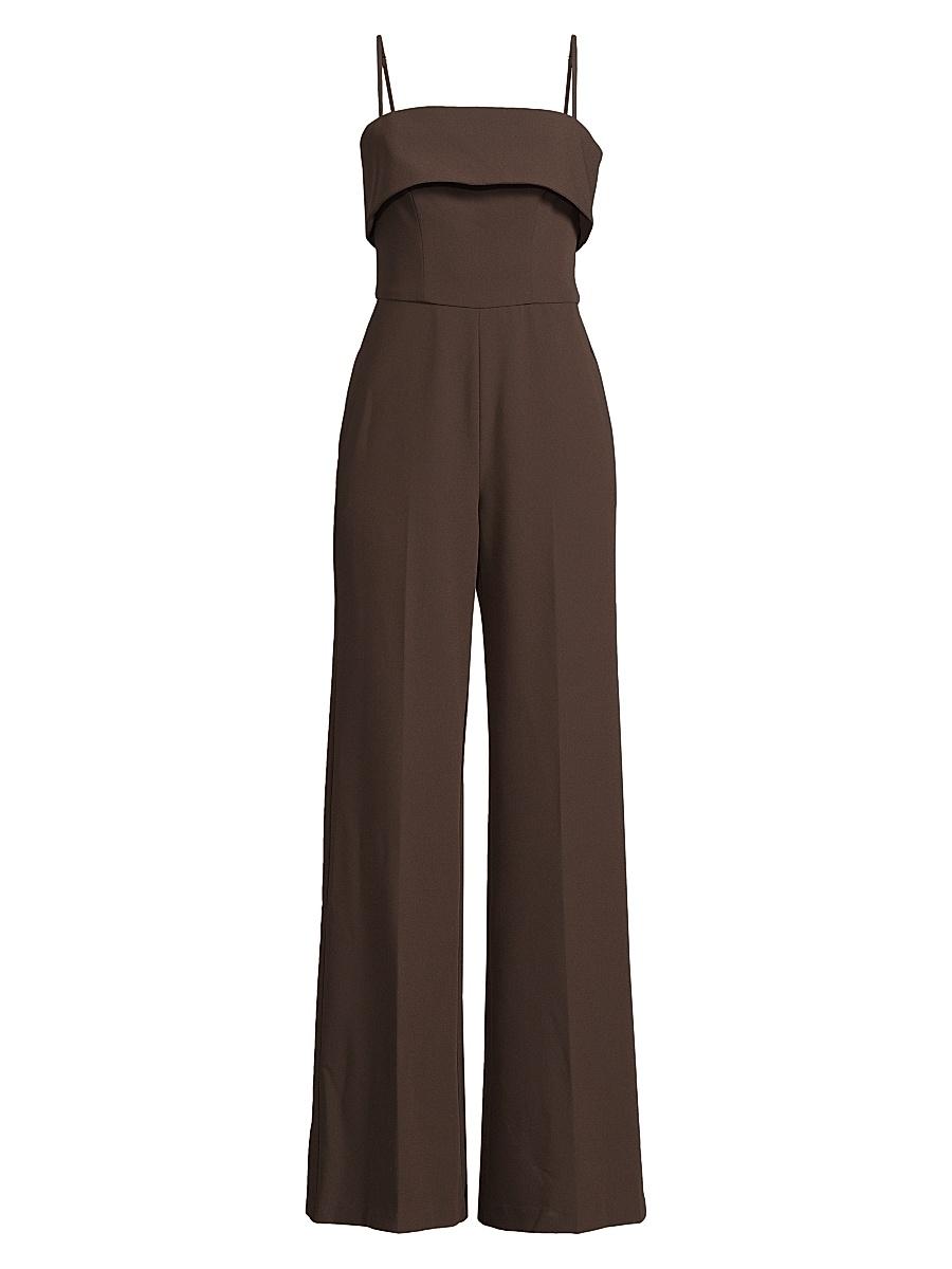 Crafted of airy stretch crepe, the Kaivon jumpsuit from Black Halo piece features a straight neckline with delicate spaghetti straps and convenient pockets. A folded detail at the chest adds a simple finishing touch to this tailored wide-leg piece. Straight neck Spaghetti straps Side-seam pockets Back zip closure 77% polyamide/16% rayon/7% spandex Lining: 96% polyamide/4% elastane Dry clean Made in USA SIZE & FIT Bodice length: about 10.5 Inseam, about 35 Leg opening, about 26.5 Model measurements: 510 tall Model is wearing a US size 4. Dress Collections - Contemporary Evening > Black Halo > Saks Fifth Avenue > Barneys. Black Halo. Color: Espresso. Size: 2.