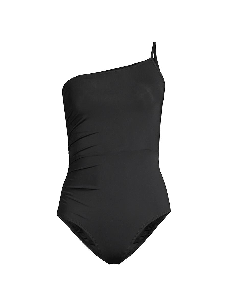 Cut to a one-shoulder silhouette, Change of Scenerys Kara one-piece swimsuit features an adjustable strap and stretch-blend design. One-shoulder neckline Adjustable strap UPF 50+ Pulls on 78% recycled nylon/22% spandex Lining: 90% polyester/10% spandex Hand wash Imported SIZE & FIT Model measurements: 510 tall Model is wearing a US size Small. Outerwear And Swimwear - Modern Swim > Change Of Scenery > Saks Fifth Avenue > Barneys. Change of Scenery. Color: Black. Size: Medium.