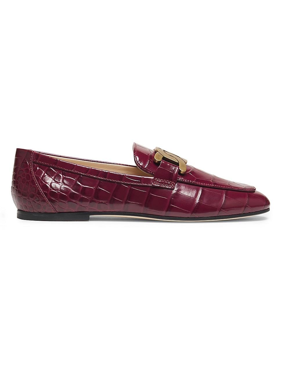 Made in Italy, the Kate loafers from Tods are crafted of croc-embossed leather and styled with a branded metal chain. Round toe Slips on Leather upper Leather lining Leather sole Made in Italy. Womens Shoes - Tods Womens Shoes > Tods > Saks Fifth Avenue > Barneys. Tods. Color: Rosso Primitivo. Size: 8.