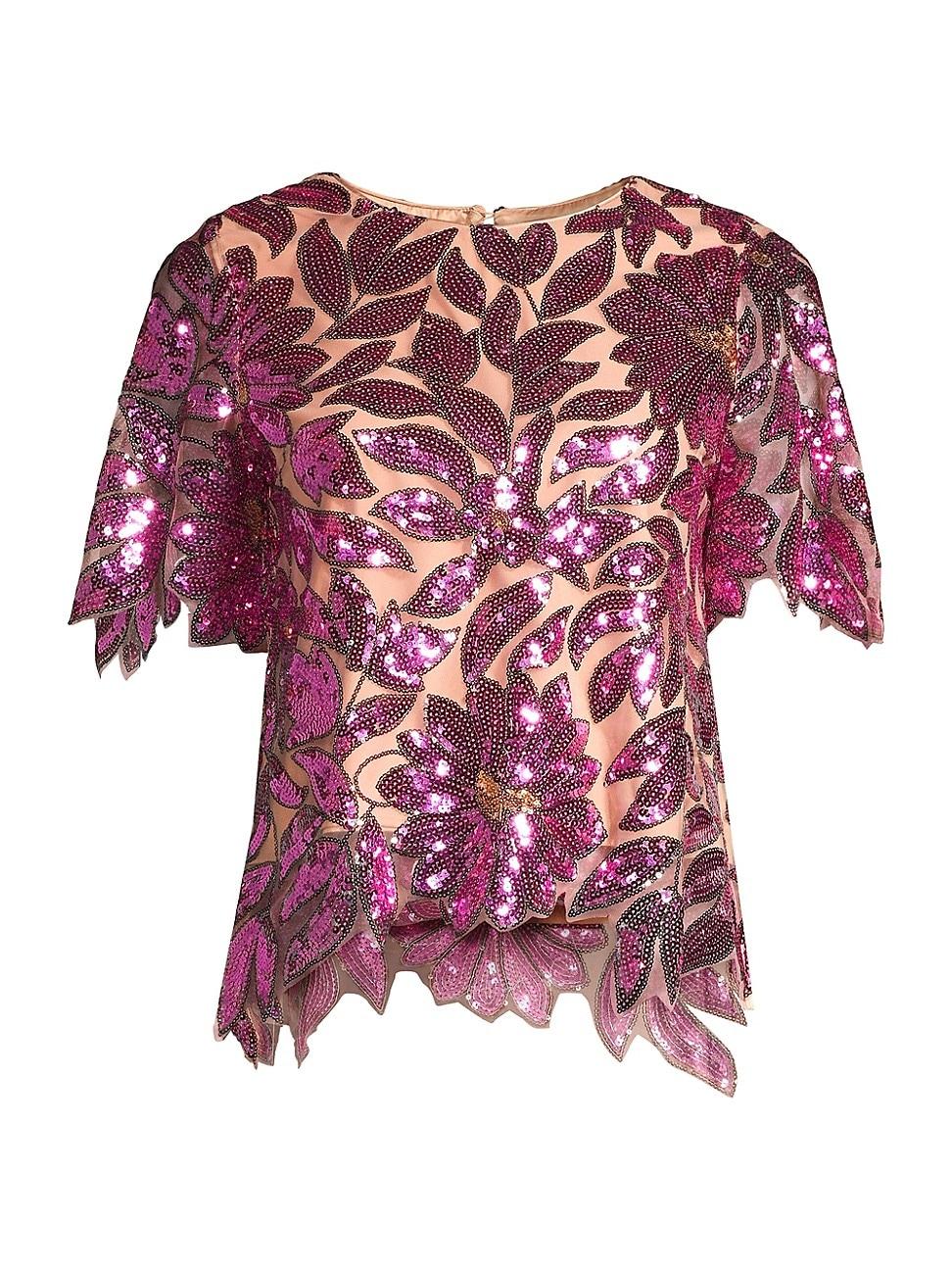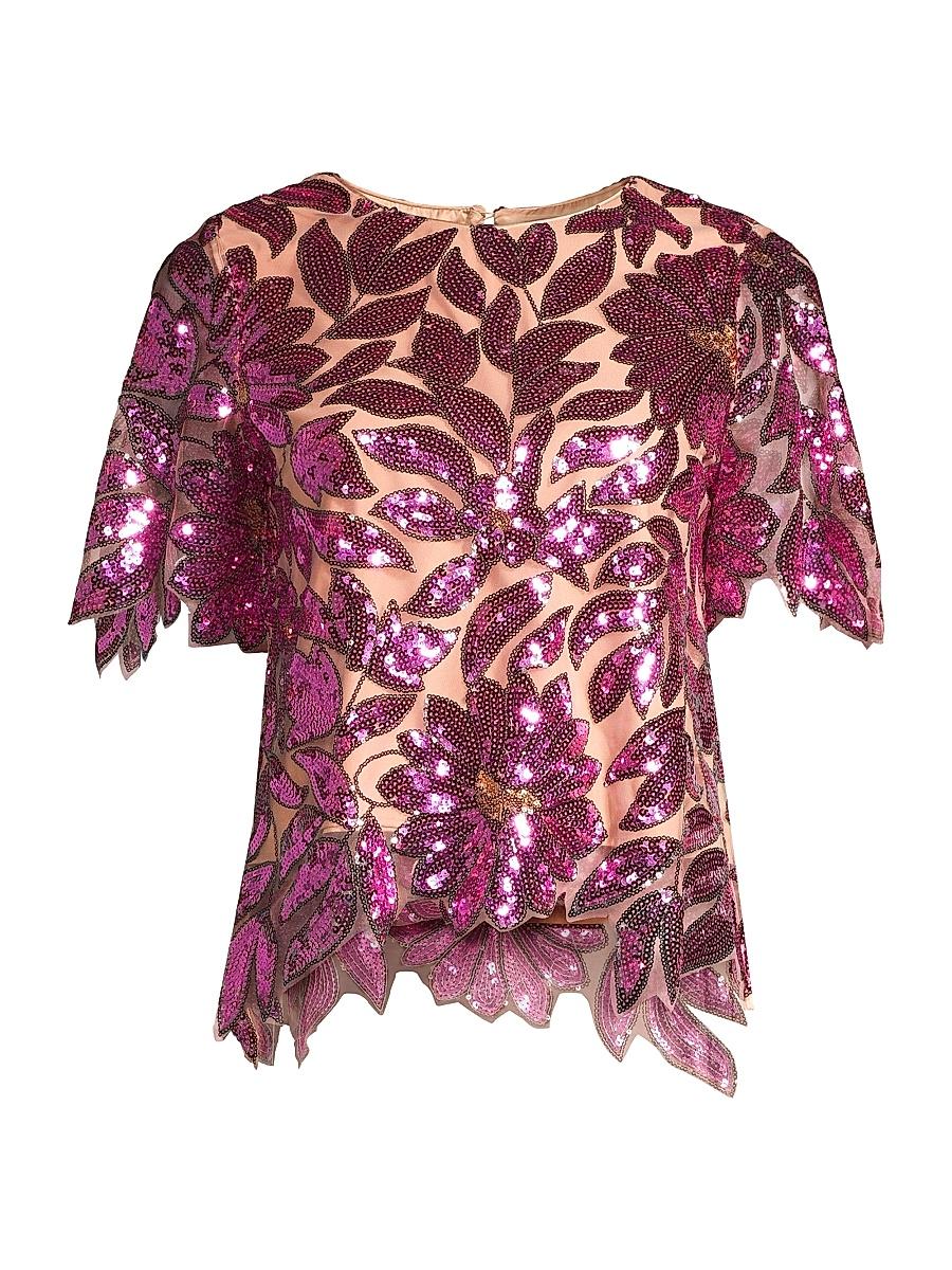 Millys Katelynn Floral Garden top flaunts a sparkling sequin overlay and asymmetric hem. Round neck Short sleeves Back-button closure 100% polyester Lining: 97% polyester/3% spandex Dry clean Imported SIZE & FIT About 22 from shoulder to hem Model measurements: 510 tall Model is wearing a US size 4. Modern Collections - Milly > Milly > Saks Fifth Avenue > Barneys. Milly. Color: Pink Multi. Size: XS.