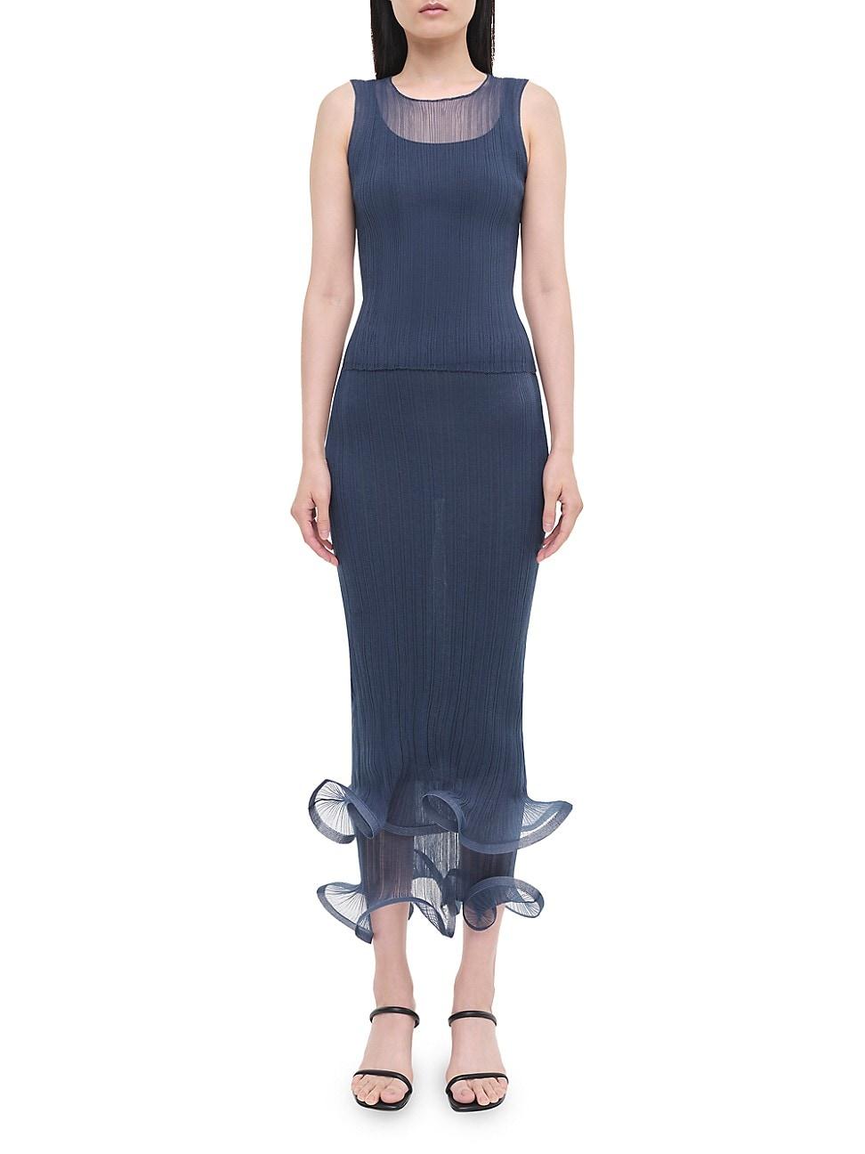 The Kelso skirt from SIMKHAI showcases a layered, voluminous hem. A rib-knit design completes this garment. Elasticized waistband 100% polyester Lining: 85% rayon/13% polyester/2% nylon Dry clean Imported SIZE & FIT About 32 long Model measurements: 510 tall Model is wearing US size Small. Contemporary Sportswear - Workshop > Simkhai > Saks Fifth Avenue > Barneys. SIMKHAI. Color: Celestial. Size: Small.