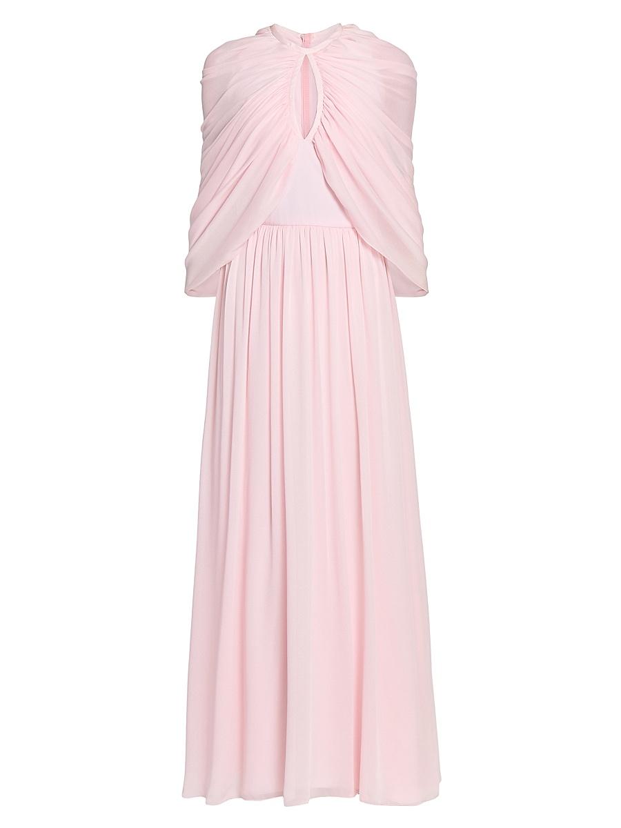 ONLY AT SAKS Crafted of romantic Italian chiffon silk, Giambattista Vallis stunning gown showcases a gathered shawl-like cape bodice highlighted by center keyhole detail. This eye-catching piece features a gathered skirt flaunting a sweeping floor-length hem. Crewneck Keyhole cape yoke Cape sleeves Concealed back zip closure 100% silk Dry clean Made in Italy SIZE & FIT Model measurements: 510 tall Model is wearing a US size 4. Advanced European - Giambattista Valli > Giambattista Valli > Saks Fifth Avenue > Barneys. Giambattista Valli. Color: Quartz Rose. Size: 6.