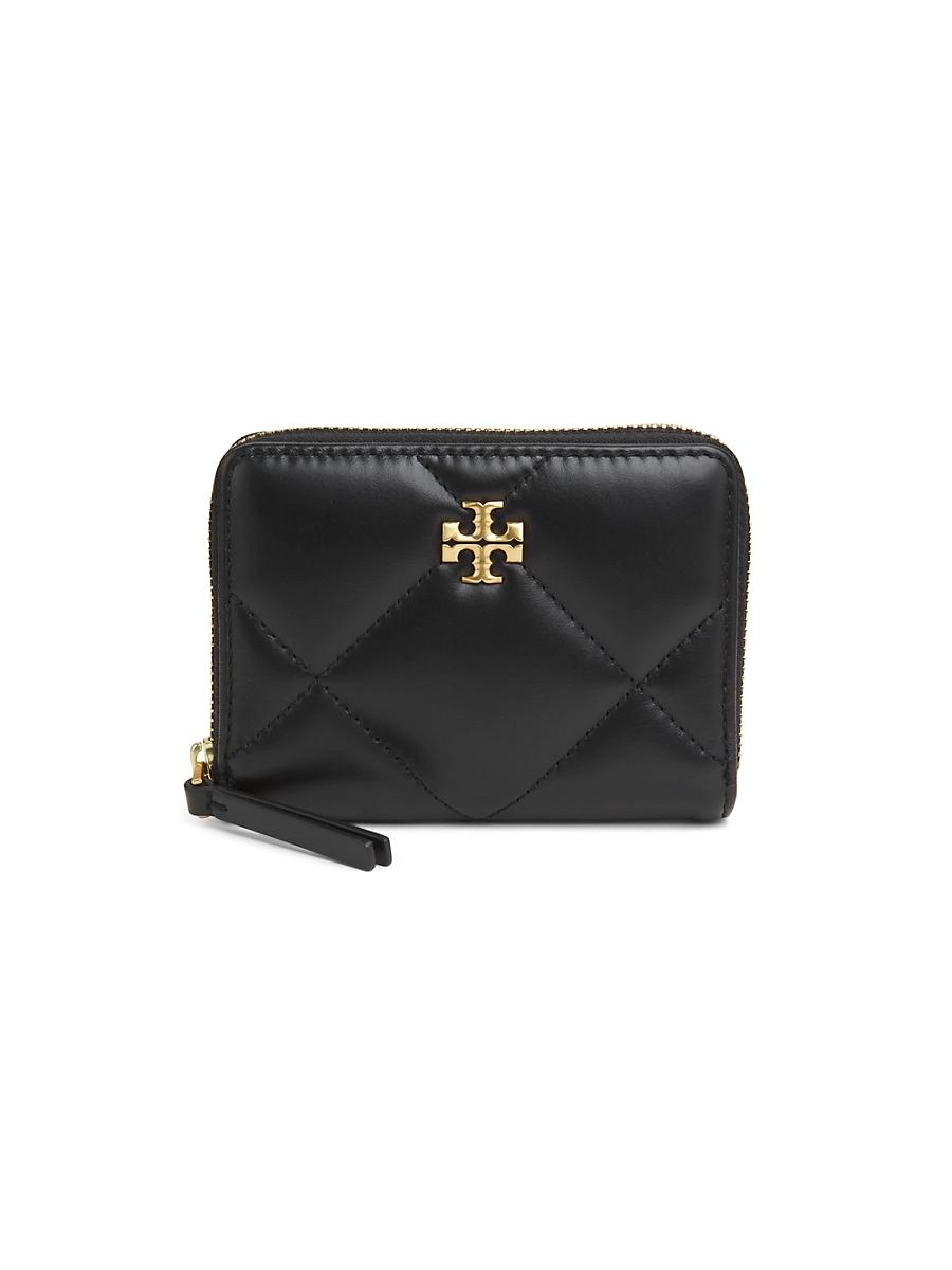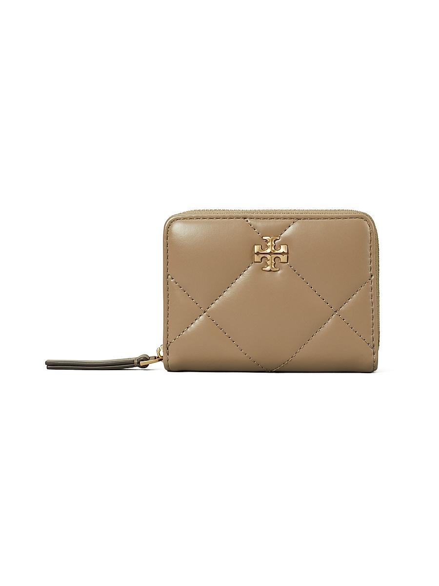Exuding an air of sophistication, this Kira wallet from Tory Burch is a compact accessory that exemplifies luxury. Crafted of diamond-quilted leather, this design features a zip closure, an interior zip coin pocket, and four card slots for optimal organization. Interior: one zip coin pocket and four card slots Zip-around closure Leather Imported SIZE About 4.3W x 3.4H ABOUT THE BRAND Since debuting her brand in 2004, New York-based designer Tory Burch has made an impact on the fashion world with her handbags and shoes, and playful-yet-polished clothing. Today, Burch remains inspired by color and travel, with her vibrant collections bursting with prints, and her instantly recognizable double-T logo drawing from Moroccan architecture. Handbags - Tory Burch Handbags > Tory Burch > Saks Fifth Avenue > Barneys. Tory Burch. Color: Taupe Oak.