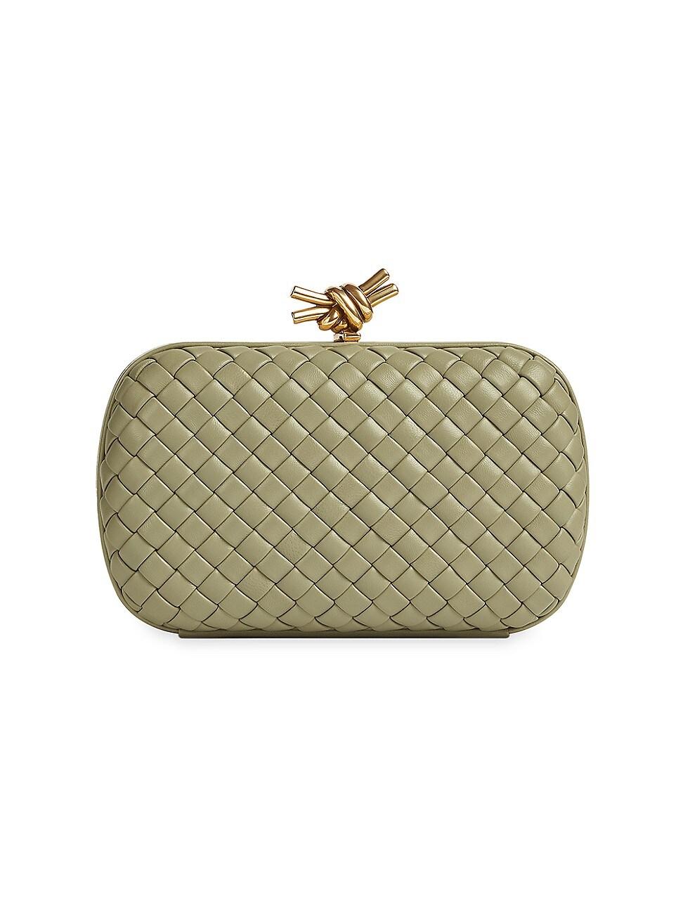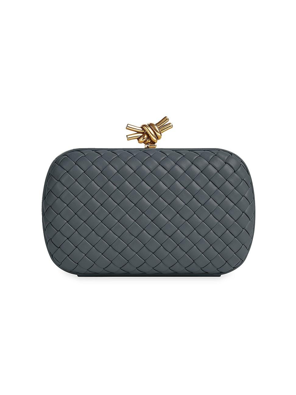 The Knot miniaudiere bag from Bottega Veneta flaunts a signature Intrecciato-pattern weave. This clutch is topped with a goldtone knot accent. Magnetic frame closure Leather Made in Italy SIZE About 8W x 4.75H x 2.25D ABOUT THE BRAND Founded in 1966, the label known for fine Italian craftsmanship with creativity at its core has since catapulted to cult-level status. The houses storied intrecciato pattern in shoes and handbags, alongside its signature minimalist ready-to-wear, have made the label an editor and It-girl favorite. Handbags - Bottega Veneta Handbags > Bottega Veneta > Saks Fifth Avenue > Barneys. Bottega Veneta. Color: Dark Mystic.
