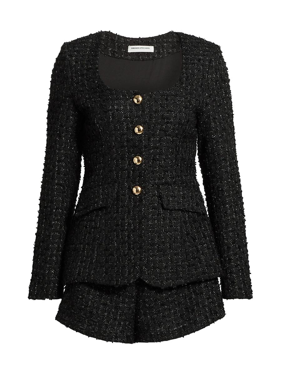 Amanda Uprichards Kya romper is woven of luxe tweed, styled with flap pockets and a U-neck. U-neck Long sleeves Side flap pockets Button-front closure Side zip closure 100% polyester Lining: 95% polyester/5% elastane Dry clean Imported SIZE & FIT About 26 from shoulder to hem Model measurements: 510 tall Model is wearing a US size Small. Contemporary Sportswear - Trend > Amanda Uprichard > Saks Fifth Avenue > Barneys. Amanda Uprichard. Color: Black. Size: Large.