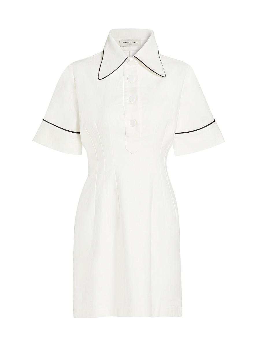 From the La Coleccionista Collection. Atelier Crumps Ludovica minidress, crafted of a luxurious cotton and linen blend, features a spread collar, A-line skirt, and corset-like paneling for a modern and sophisticated look. Spread collar Short sleeves Button-front closure 87% cotton/13% linen Lining: 96% polyester/4% spandex Dry clean Imported SIZE & FIT Model measurements: 510 tall Model is wearing a US size Small. Contemporary Sportswear - Trend > Atelier Crump > Saks Fifth Avenue > Barneys. Atelier Crump. Color: White. Size: Small.