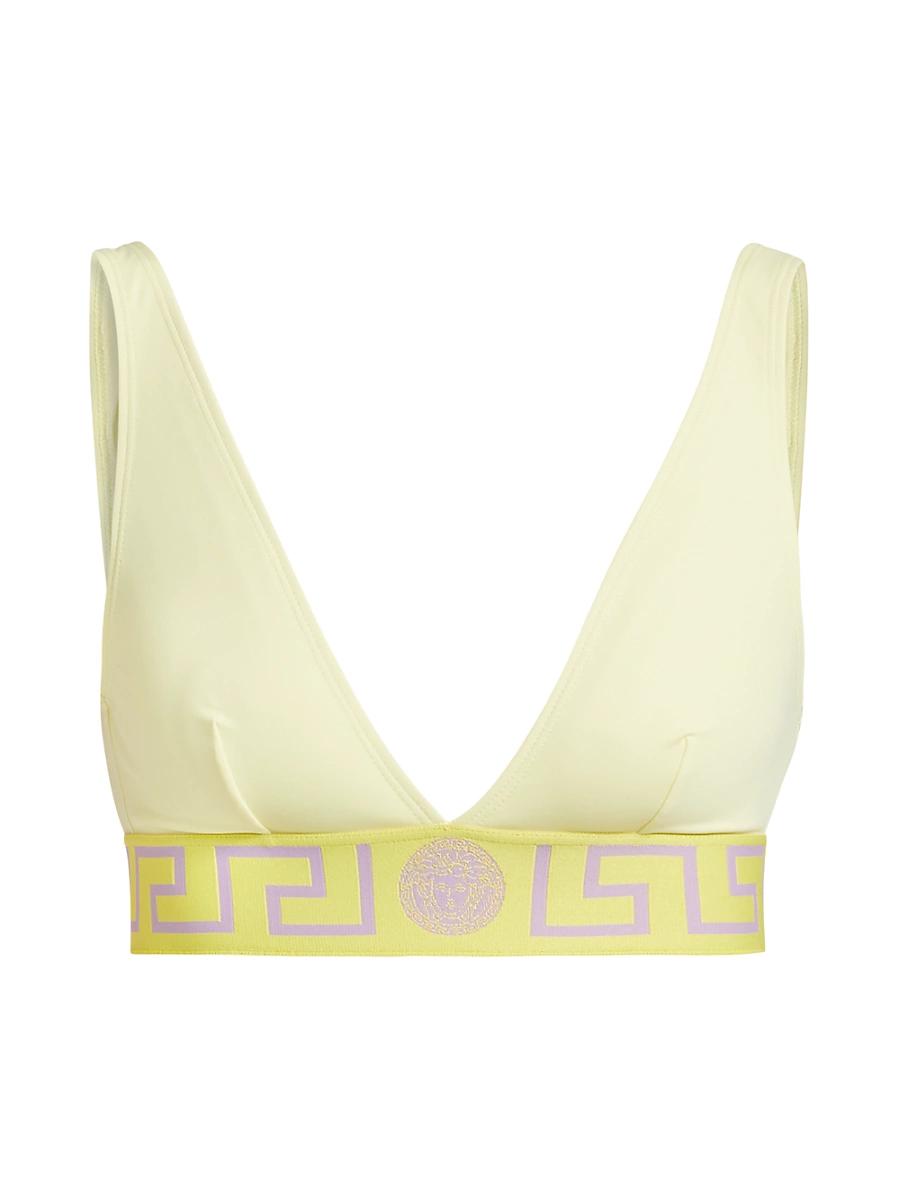 Versaces bikini bottom brief features a La Greca elasticized waistband. Elasticized waistband 78% nylon/22% elastane Lining: 78% nylon/22% elastane Trim: 82% polyester/9% elastane/9% nylon Hand wash Made in Italy ABOUT THE BRAND Founded in 1978, Versace is instantly recognizable by the signature Medusa head logo, chosen by founder Gianni Versace for its Greek symbolism. The Italian label is known for its luxe, bold clothing and accessories-think gilding, oversized logos and punchy prints. Since taking over artistic direction, Giannis sister Donatella Versace has maintained the brands strong identity, with a renewed vision to give customers the ultimate freedom to express themselves. Outerwear And Swimwear - Designer Swimwear > Versace > Saks Fifth Avenue > Barneys. Versace. Color: Mauve. Size: XS.