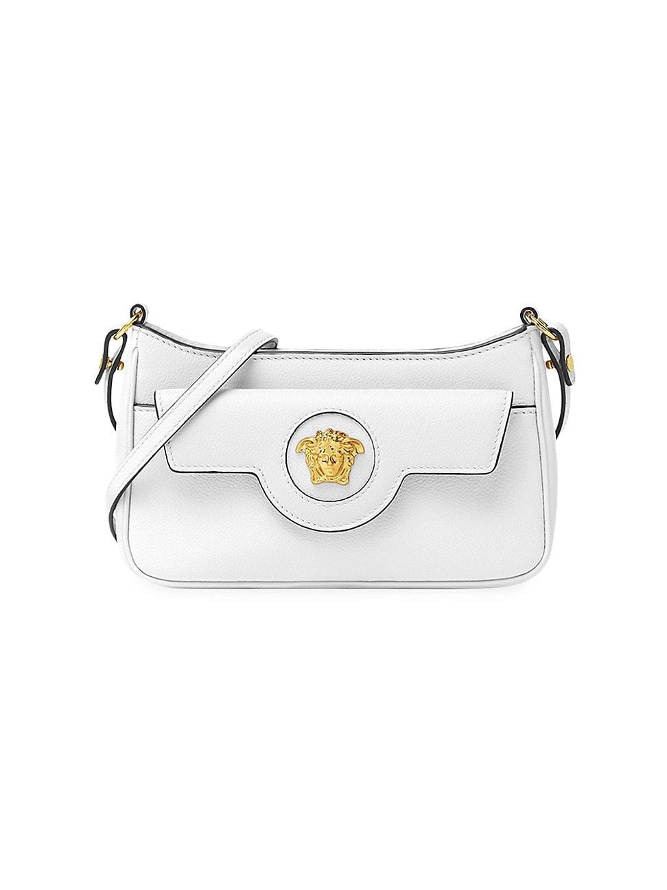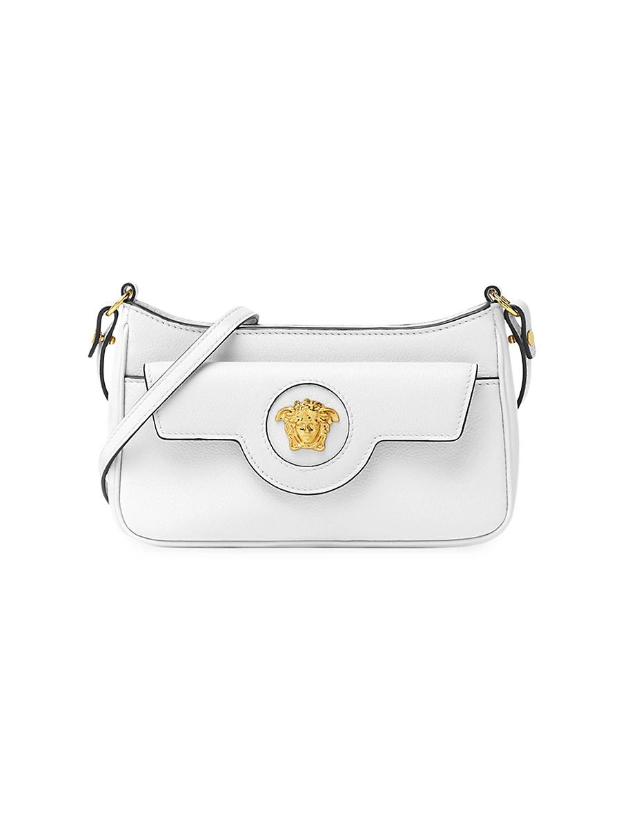 Versaces La Medusa mini bag is crafted of leather in Italy. Shoulder strap Exterior: one flap snap pocket Zip closure Leather Lining: cotton Made in Italy SIZE About 8.3W x 5H x 1.8D ABOUT THE BRAND Founded in 1978, Versace is instantly recognizable by the signature Medusa head logo, chosen by founder Gianni Versace for its Greek symbolism. The Italian label is known for its luxe, bold clothing and accessories-think gilding, oversized logos and punchy prints. Since taking over artistic direction, Giannis sister Donatella Versace has maintained the brands strong identity, with a renewed vision to give customers the ultimate freedom to express themselves. Handbags - Italian Designers > Versace > Saks Fifth Avenue > Barneys. Versace. Color: Optical White.