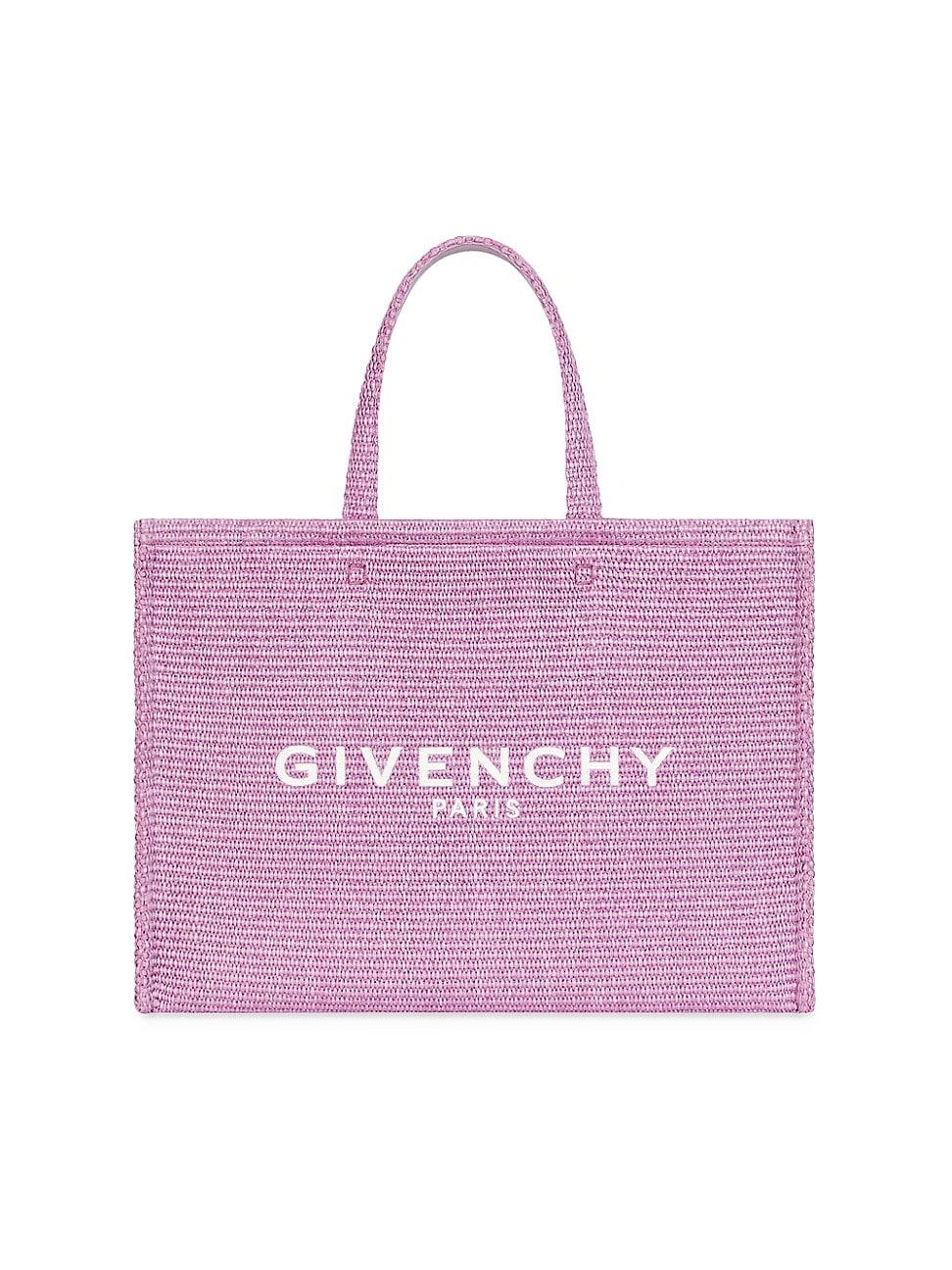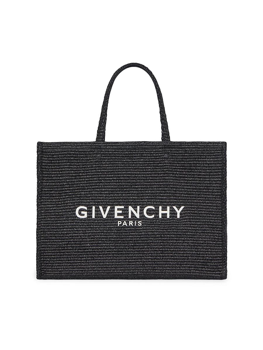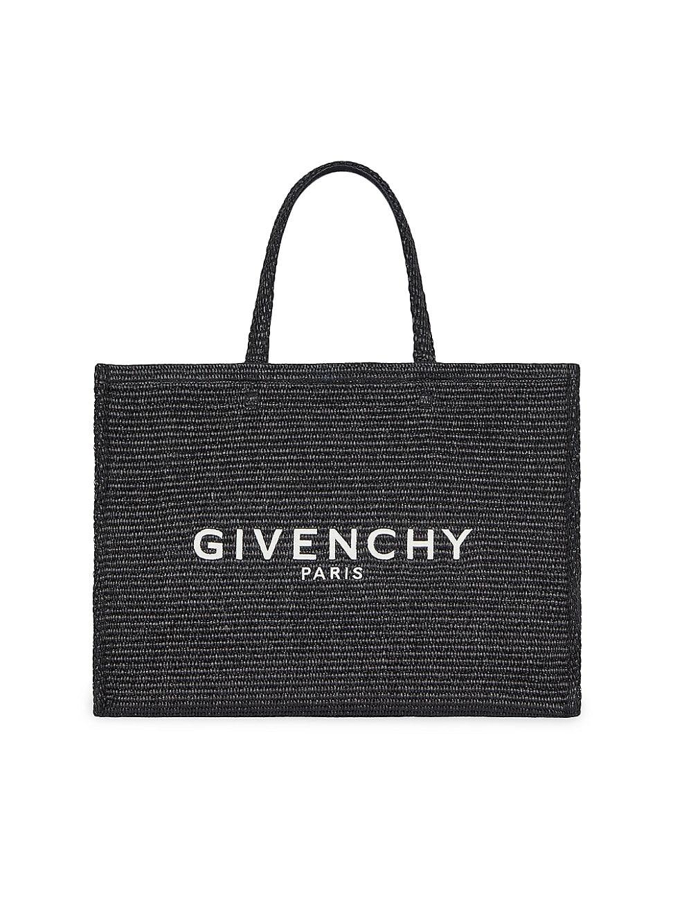 Medium G-Tote bag in raffia. Medium tote bag in raffia G-Tote line Long raffia handles offering hand or shoulder carrying Contrasting Givenchy Paris signature embroidered on the front Reinforcement to keep its shape One main compartment and one flat pocket inside Composition: 52% cotton, 48% polyamide Made In: Italy Handle: 79 17.32 x 12.2 x 5.91. Lsd Handbags - Givenchy > Givenchy > Saks Fifth Avenue > Barneys. Givenchy. Color: Black.