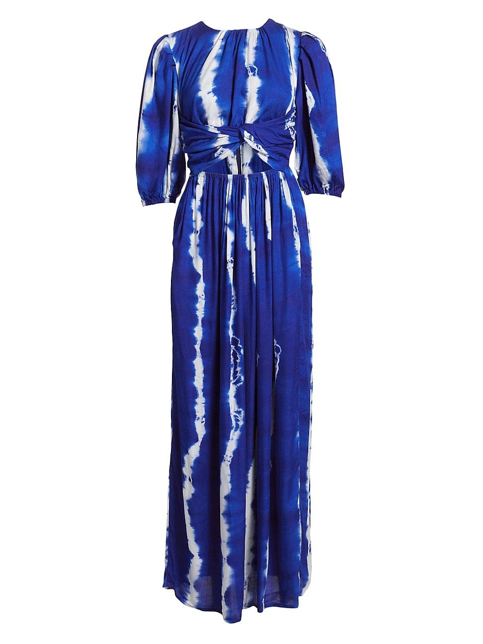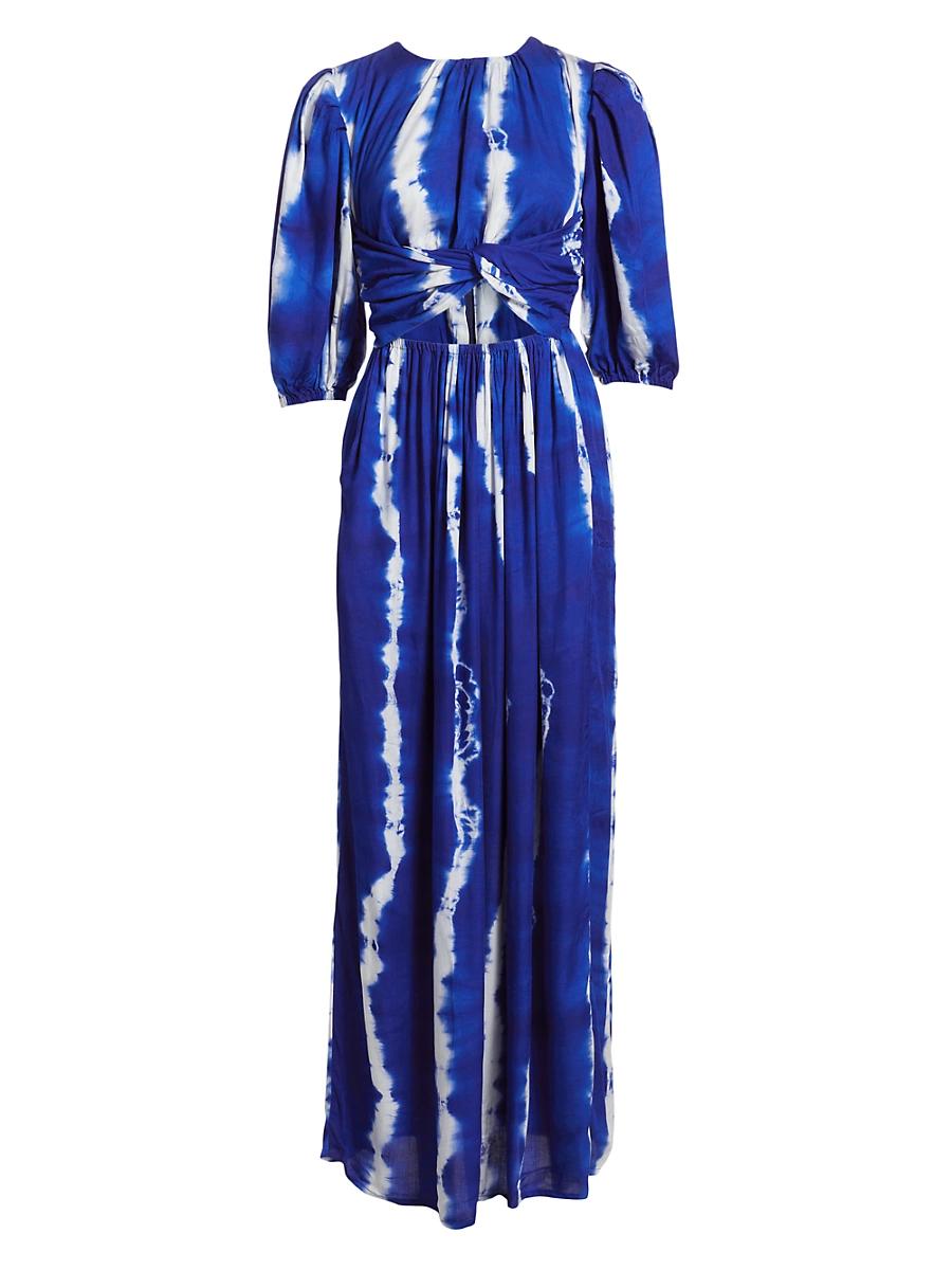 Crafted of cotton, Elisamamas Labake maxi dress is designed with a round neck, twist front, and waist cut out. This piece features a vibrant tie-dye print, elbow length puff sleeves, and side seam pockets. Round neck Elbow-length puff sleeves Twist front Waist cut out Side seam pockets Back zip closure 100% cotton Hand wash Imported SIZE & FIT About 59 from shoulder to hem Model measurements: 510 tall Model is wearing a US size Small. Modern Collections - Modern Trend > Elisamama > Saks Fifth Avenue > Barneys. Elisamama. Color: Blue. Size: XL.