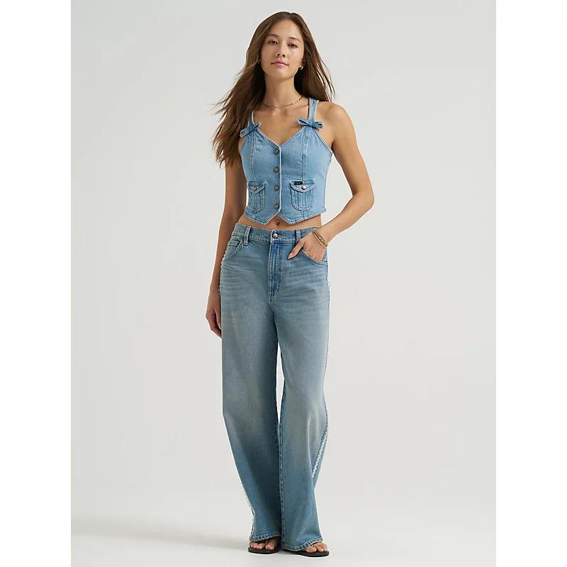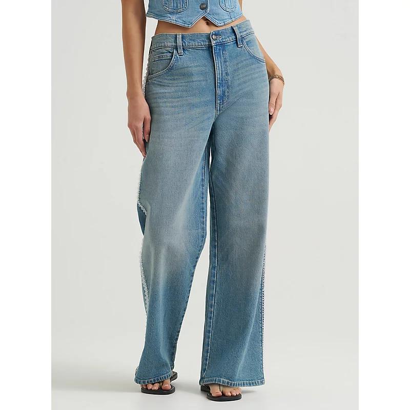 Give your denim a softer look, with this lacier version of a classic. Starting with a low-slung waist and wide leg, these jeans keep things comfortable from waist to hem. Made from 99% cotton with a white lace trim down the leg, it’s an elevated take on your favorite pair of jeans. 99% Cotton, 1% Elastane. Forever Light. 34 W / 31 Inches.