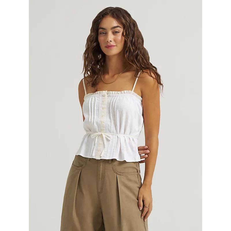 Make your cami the main character, with this lace-trim top. This romantic cami brings a softer look and feel to your look . From the rouching at the front to the lace trim and ribbon back, it’s designed to be loved, down to its 100% cotton build. 96% Cotton, 3% Polyester, 1% Elastane. Bright White. M.