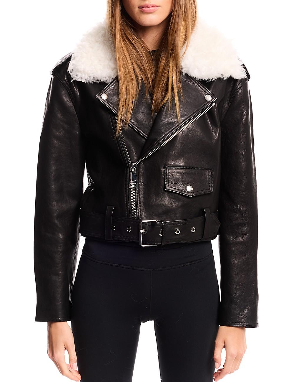 This leather biker jacket from Sam. is styled with a detachable shearling spread collar, an asymmetric front zip closure, and a belted waist. Detachable collar Notch lapels Long sleeves, zip cuffs Side snap flap pockets Belted Front asymmetric zip closure 100% leather Lining: 100% polyester Trim: 100% shearling Fur type: dyed shearling Fur origin: Italy Dry clean by leather specialist Imported of Italian fabric SIZE & FIT About: 18.25 from shoulder to hem Model measurements: 510 tall Model is wearing a US size 4 ABOUT THE BRAND Since the brands debut in 2010, Sam.s founders Suzanne and Andrew Marc Schwartz have focused on creating luxurious, innovative outerwear that masters the balance of function and style. The coats high-performance fabrics are warm enough to endure freezing temperatures-many are also wind resistant and water repellant. Outerwear And Swimwear - Down > Sam. > Saks Fifth Avenue > Barneys. Sam.. Color: Black White Gitana. Size: XS.