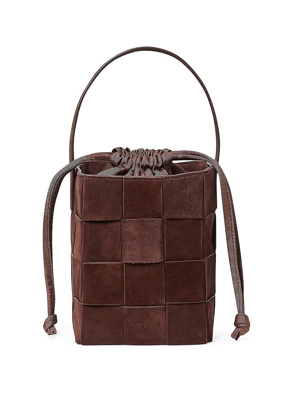 The Laith bucket bag from Loeffler Randall is a testament to meticulous craftsmanship, made of suede This style features a woven design and is lined with cotton faille for a luxurious feel. Top handle Shoulder strap Drawstring closure Suede Lining: cotton Made in Italy SIZE About 5W x 6.5H x 5D Top handle: about 5 drop. Handbags - Contemporary Handbags > Loeffler Randall > Saks Fifth Avenue > Barneys. Loeffler Randall. Color: Espresso.
