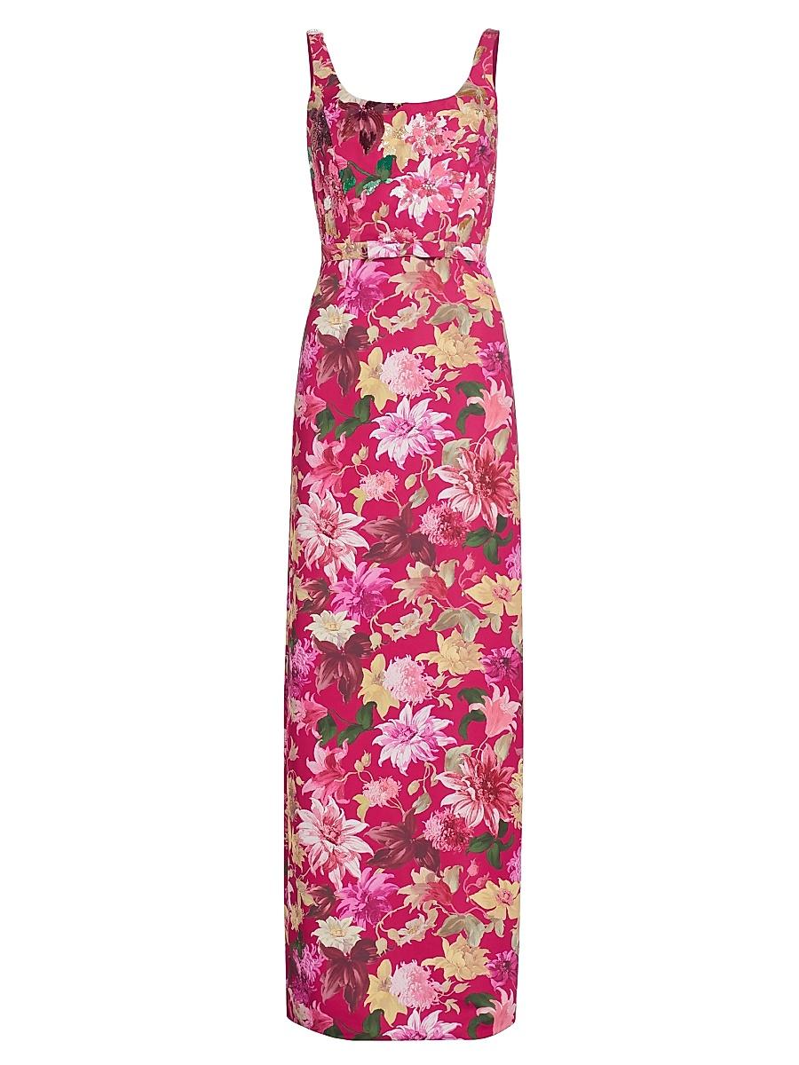 Sachin & Babis Lana gown is crafted of faille printed with bold florals and shaped by a belt at the waist. Scoopneck, scoopback Shoulder straps Belted waist Concealed back zip closure 100% polyester Dry clean Imported SIZE & FIT About 60 from shoulder to hem Model measurements: 510 tall Model is wearing a US size 4. Dress Collections - Contemporary Evening > Sachin & Babi > Saks Fifth Avenue > Barneys. Sachin & Babi. Color: Deep Pink Dahlia. Size: 10.