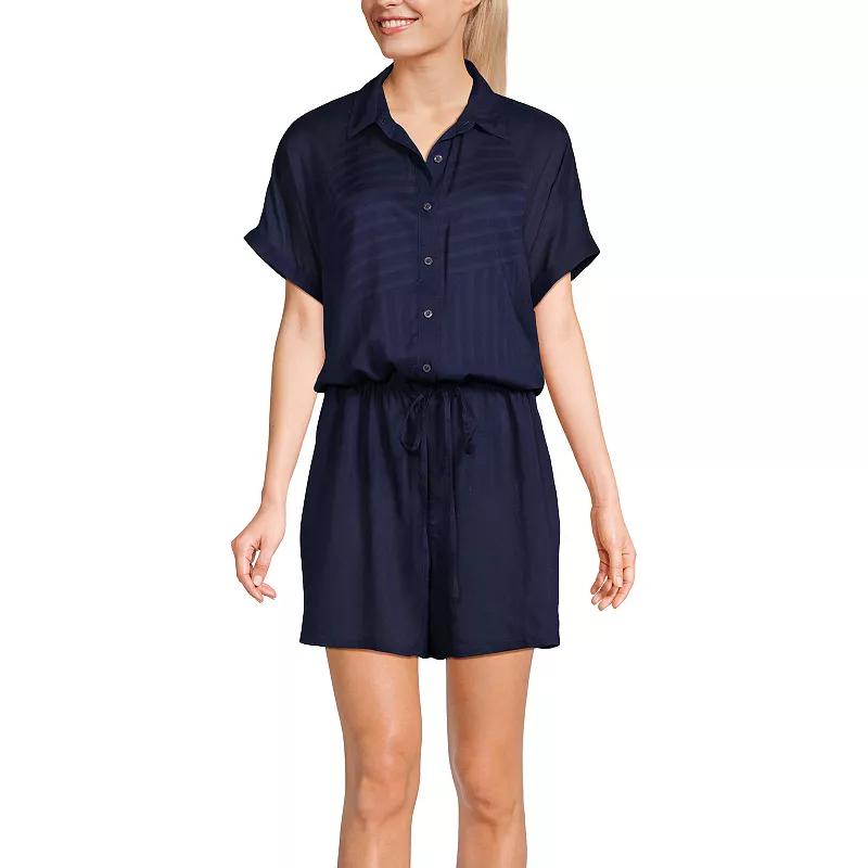 Versatile and super stylish, this womens Lands End romper cover-up is the perfect throw-on-and-go item to bring on your next getaway. Click on this WOMENS GUIDE to find the perfect fit and more! Versatile and super stylish, this womens Lands End romper cover-up is the perfect throw-on-and-go item to bring on your next getaway. Click on this WOMENS GUIDE to find the perfect fit and more! FEATURES Button front Short sleeves 2 on-seam pockets Straight hem Woven fabricFIT & SIZING 19 3/4-in. length from shoulder to hemFABRIC & CARE Modal Machine wash Imported Size: X Large. Color: Pink. Gender: female. Age Group: adult. Pattern: Solid.