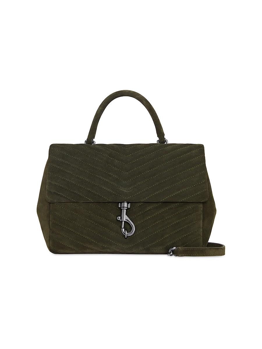 Rebecca Minkoffs Edie shoulder bag is crafted of suede. This large bag features a detachable strap, allowing for versatile styling options, and is detailed with a gunmetal chain-link jacquard lining. Top handle Detachable shoulder strap Exterior: one back zip pocket Flap with magnetic snap closure Suede Imported SIZE About 11.5W x 7.8H x 4.7D Handle drop: about 11 Strap drop: about 48.5 Weight: about 1.57 lb. Handbags - Contemporary Handbags > Rebecca Minkoff > Saks Fifth Avenue > Barneys. Rebecca Minkoff. Color: Moss.