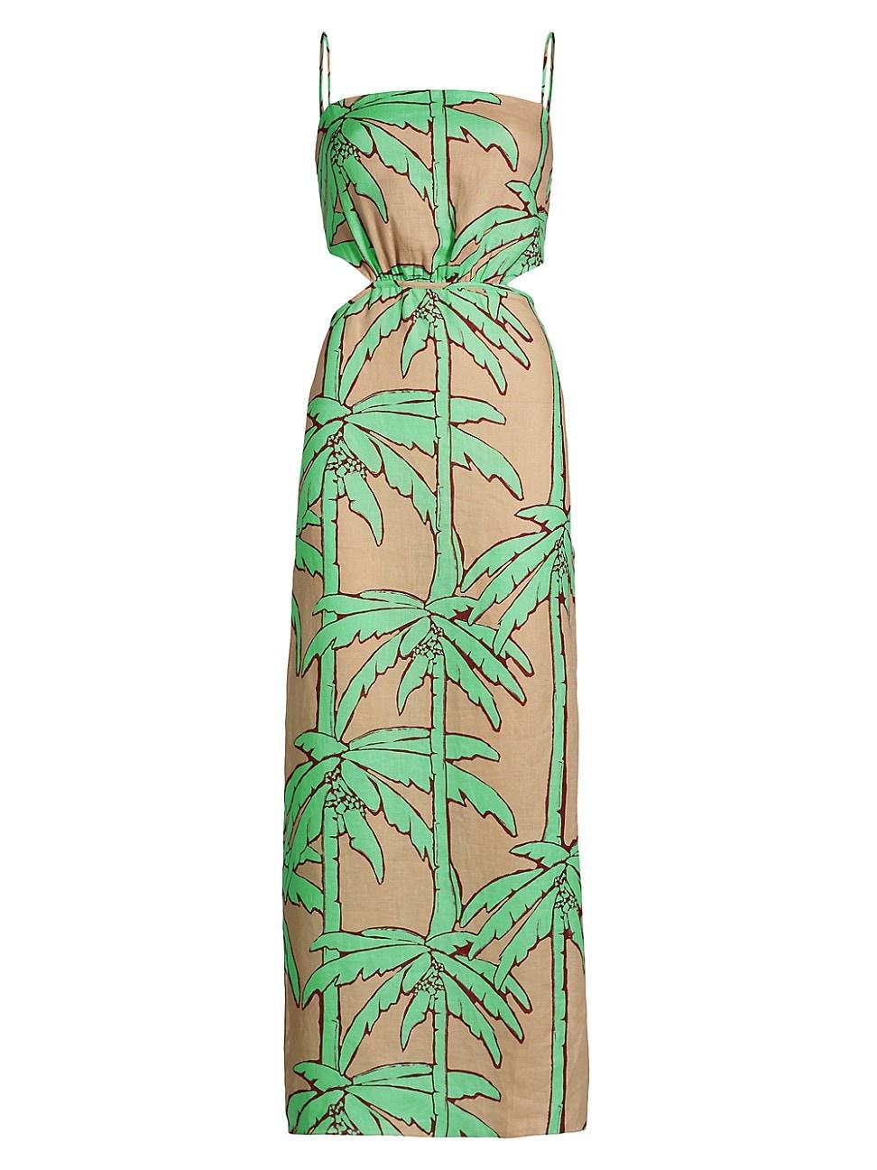 From the Las Islas Winter Sun Collection. Johanna Ortizs linen Beach Harmony dress is printed with neon palm trees. This ankle-length style is shaped by cutouts at the waist. Square neck Shoulder straps Elasticized cut-out waist Side slit Self-tie back 100% linen Lining: 100% cotton Dry clean Imported SIZE & FIT About 55 from shoulder to hem Model measurements: 510 tall Model is wearing a US size 4. Designer Lifestyle - Johanna Ortiz > Johanna Ortiz > Saks Fifth Avenue > Barneys. Johanna Ortiz. Color: Salty Palms Mint Brown. Size: 8.
