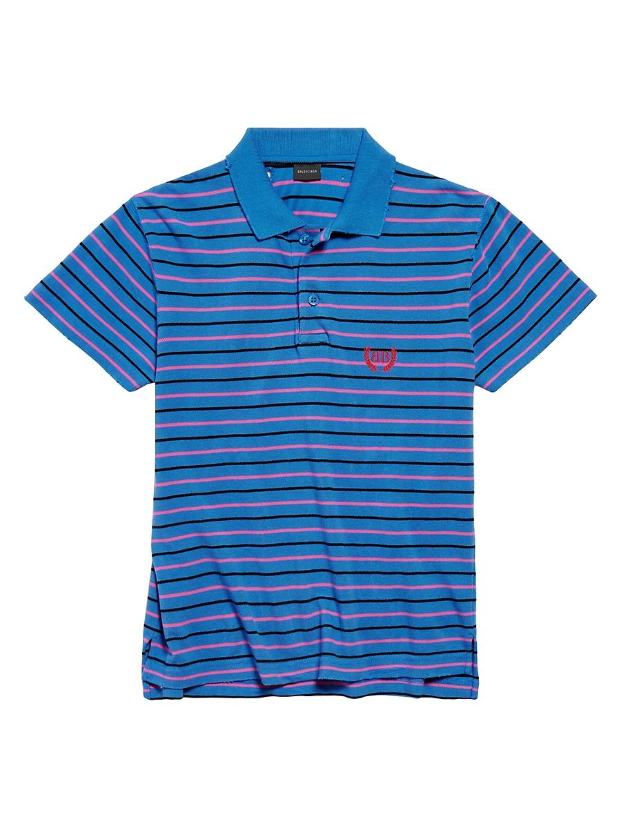 Cotton Flat collar 2 button placket Short cuffed sleeves Balenciaga engraved buttons Classic laurel artwork embroidered at chest Made in Portugal Main Material: 100% Cotton Embroidery: 100% Polyester Contains Non-Textile Parts Of Animal Origin. Lsd Rtw - Balenciaga Rtw > Balenciaga > Saks Fifth Avenue > Barneys. Balenciaga. Color: White Blue. Size: Large.