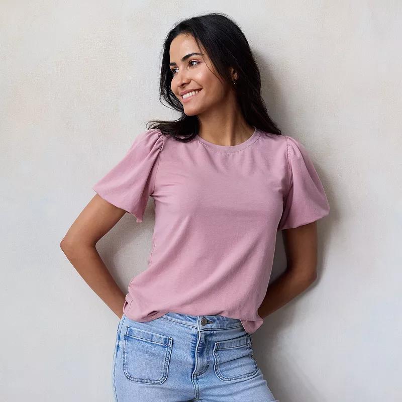 Elevate your everyday look with this women's LC Lauren Conrad bubble sleeve top. Click on this WOMEN'S GUIDE to find the perfect fit and more!FEATURES Crewneck Short balloon sleeves Straight hem Jersey construction Pullover stylingFIT & SIZING Regular fit 24 1/2-in. length from shoulder to hemFABRIC & CARE Cotton, modal, spandex Machine wash and tumble dry low ImportedRESPONSIBLE Supports more sustainable cotton farming Size: Small. Color: Lavender Silk. Gender: female. Age Group: adult.