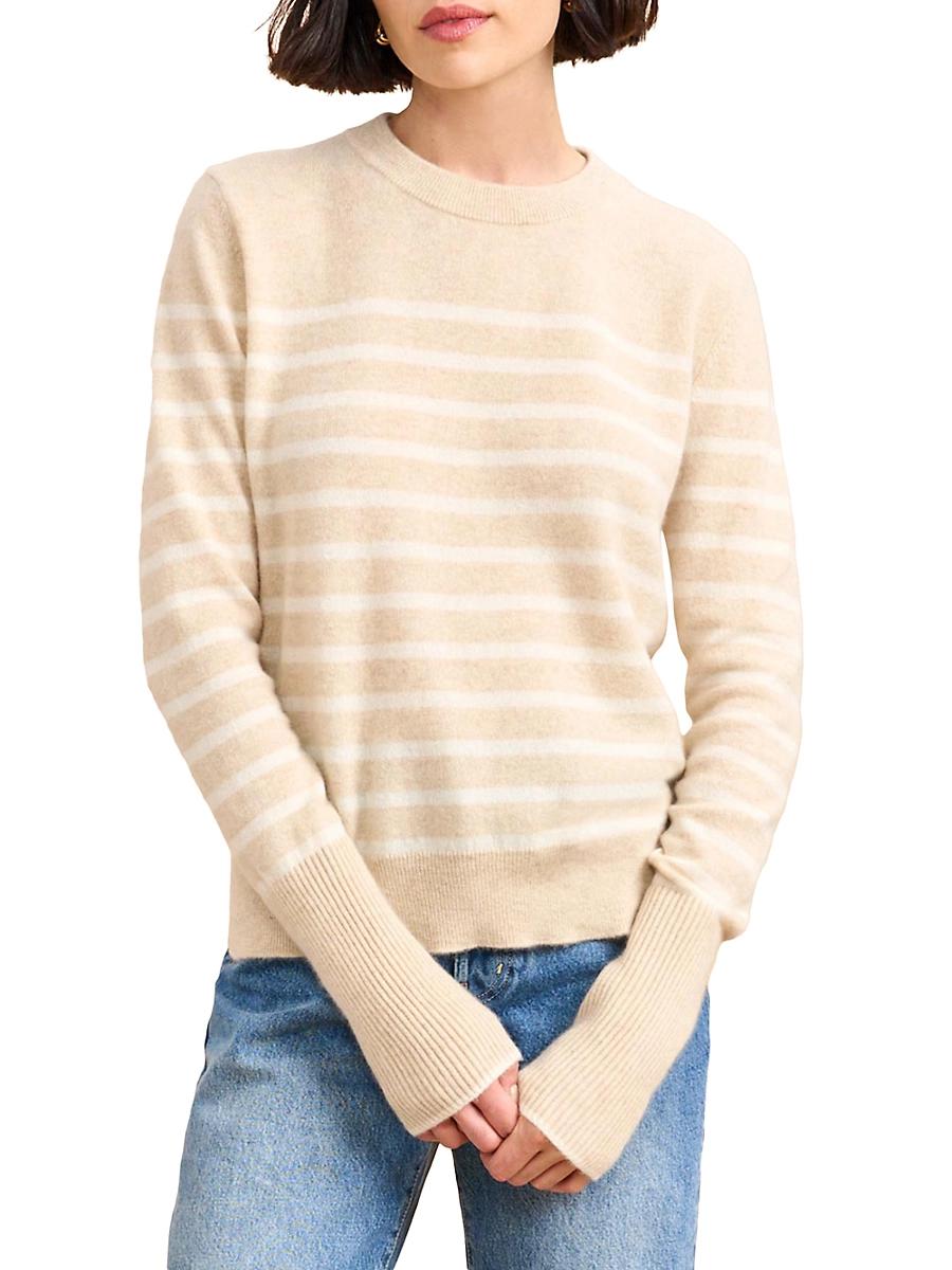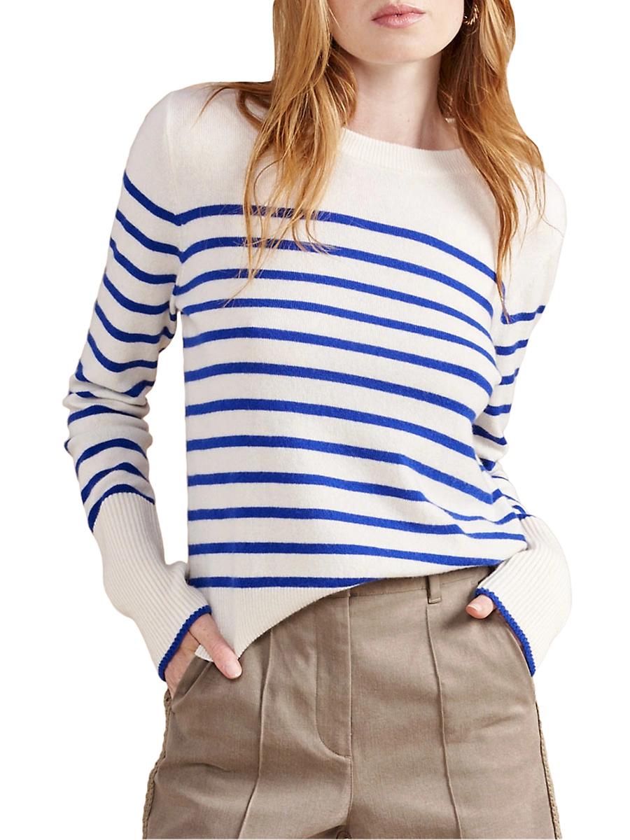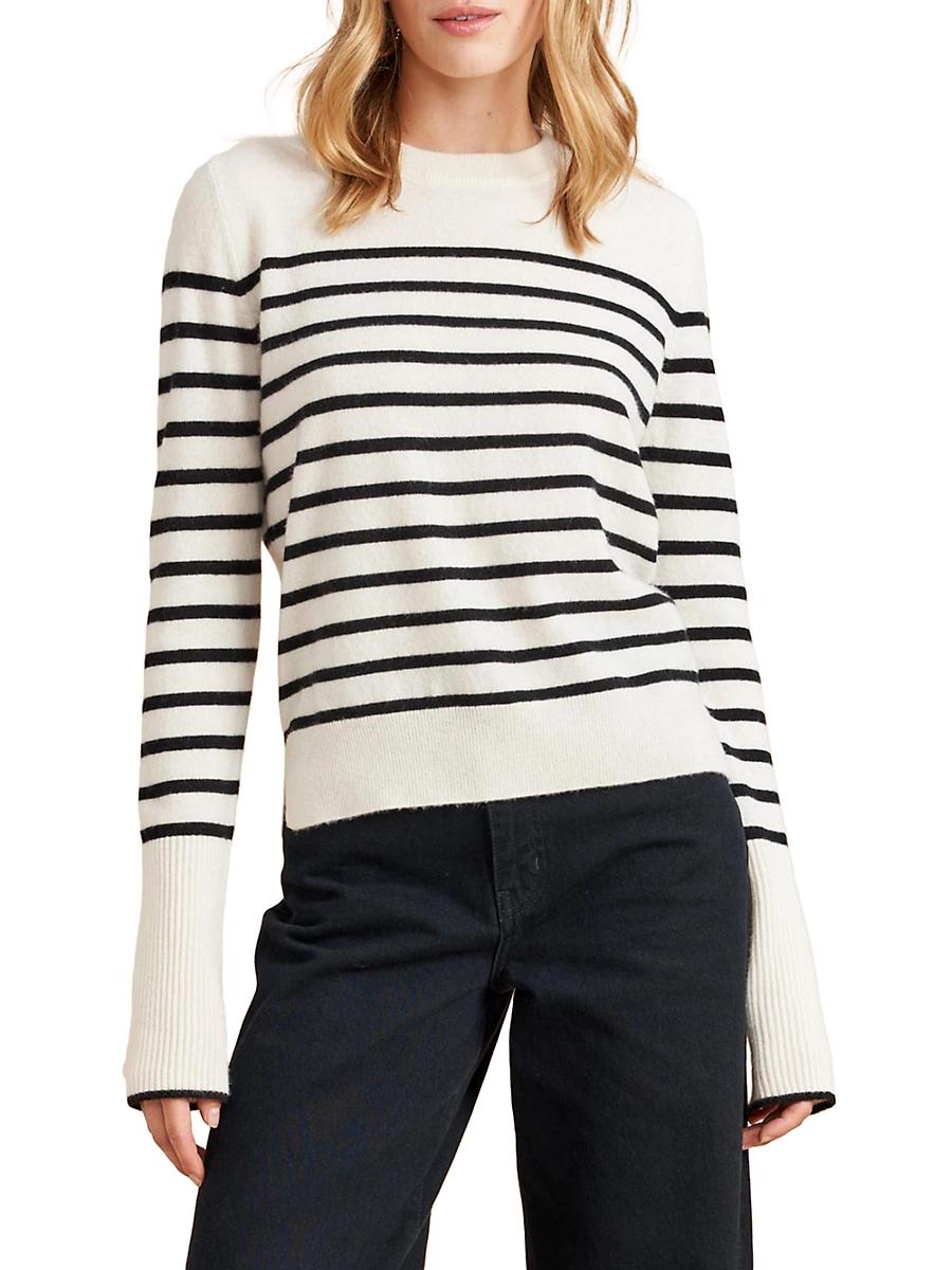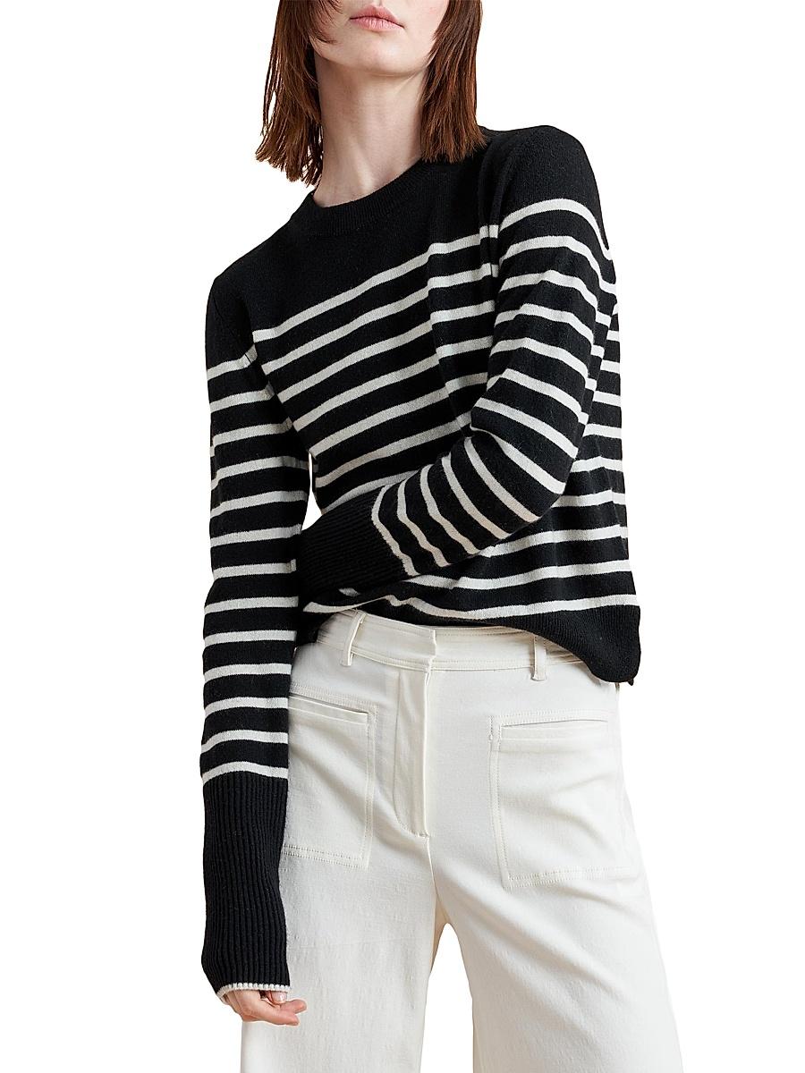 Meet La Lignes ultimate, year round essential 100% light weight cashmere Lean Lines Sweater. Cozy up in this black/cream striped cashmere sweater you will never want to take off. 100% Cashmere Cream with cobalt stripes Set-in sleeves Elongated rub-knit cuffs with contrast tipping Regular fit Side slits Dry clean or hand wash Imported SIZE Model is wearing US size small Model measurements: 59 tall. Lsd Rtw - Womens Rtw Lsd Mp > La Ligne > Saks Fifth Avenue > Barneys. La Ligne. Color: Black Cream. Size: Medium.