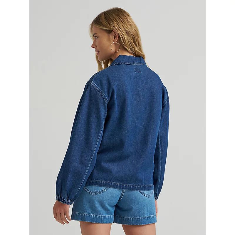 Looking for a lighter take on the chore jacket? This chore shacket brings a lighter-weight denim made from 100% cotton, with a set of pleated shoulders, and a swing-style back for extra movement . With a roomy sleeve that cinches at the wrist, it’s a reimagining of a favorite. 100% Cotton. Under Shade. M.