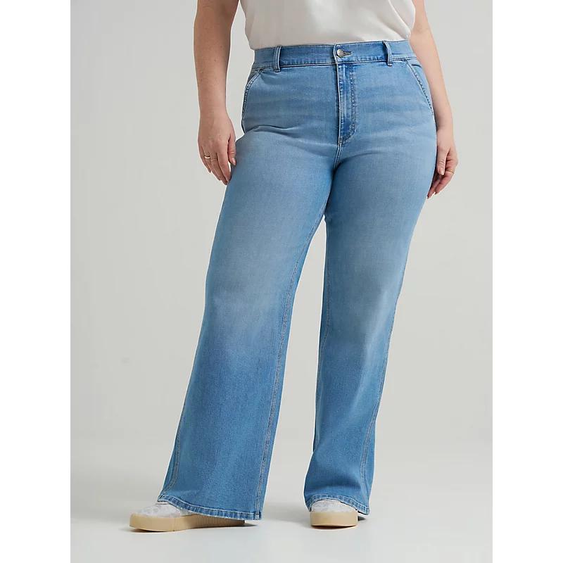 Commit to quality with our best A-line yet. With a high-waisted cut that falls into a retro wide leg, these jeans bring a bold silhouette to every look without losing an ounce of comfort. Designed with plenty of pocket space and our signature logo hardware, they're the perfect blend of style and design. 90% Cotton, 9% Polyester, 1% Elastane. Light Theory. 18 W / 33 Inches (L).
