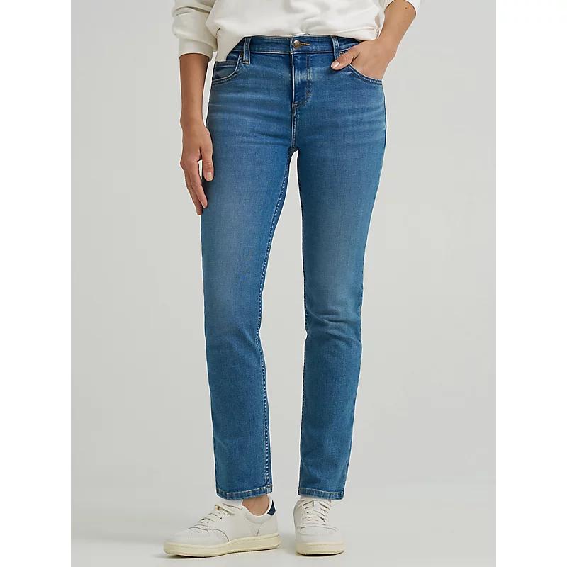 A slimmer fit meets our most comfortable cotton blend with the slim-straight leg jean. With a high-rise waist that falls into a slim-fit, these denim darlings highlight your silhouette while never feeling restrictive. Finished with our five-pocket design and signature hardware, they bring a little extra quality to every day. 77% cotton, 19% Polyester, 2% Elastomultester, 2% Elastane. On The Move. 12 W / 28 Inches (M).