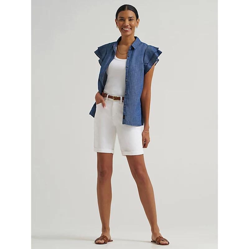 A classic denim short is always in-style. This mid-rise denim comes with the same relaxed fit as our Legendary Relaxed Jean, for a new look with that classic versatility. Designed with an adjustable pre-rolled cuff for the perfect fit every time, they're perfect for all of your adventures. 64% Cotton, 17% Polyester, 17% Viscose, 2% Elastane. Bright White. 8 W / 9 Inches (M).
