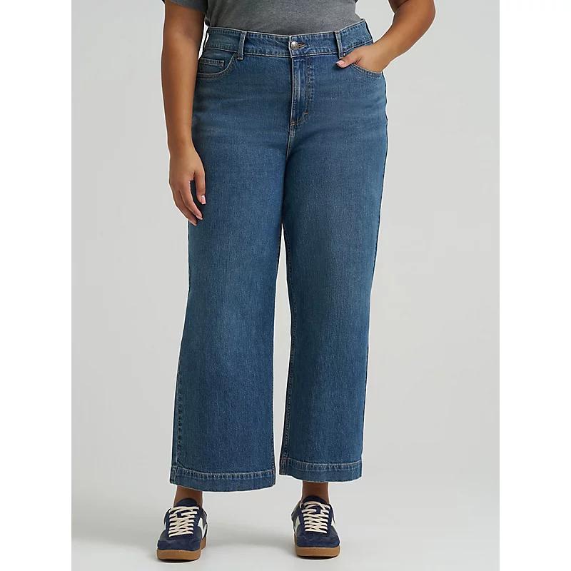 Whether you’re walking along the crashing waves or visiting an open-air market, the capri is the ultimate warm weather pant. Embrace the sunshine with the Lee® legendary wide leg crop. These jeans start with a high waist that hugs your curve, loosening throughout the leg for a comfortable wide leg feel. They come adorned with all of the classic Lee hardware, including spade pockets, a brass logo button, and five pockets to hold all of your essentials. Plus, they’re made from a recycled cotton blend for a cute look that also feels good for the planet. 99% Cotton, 1% Elastane. Manifested. 30 W / 26 Inches (M).