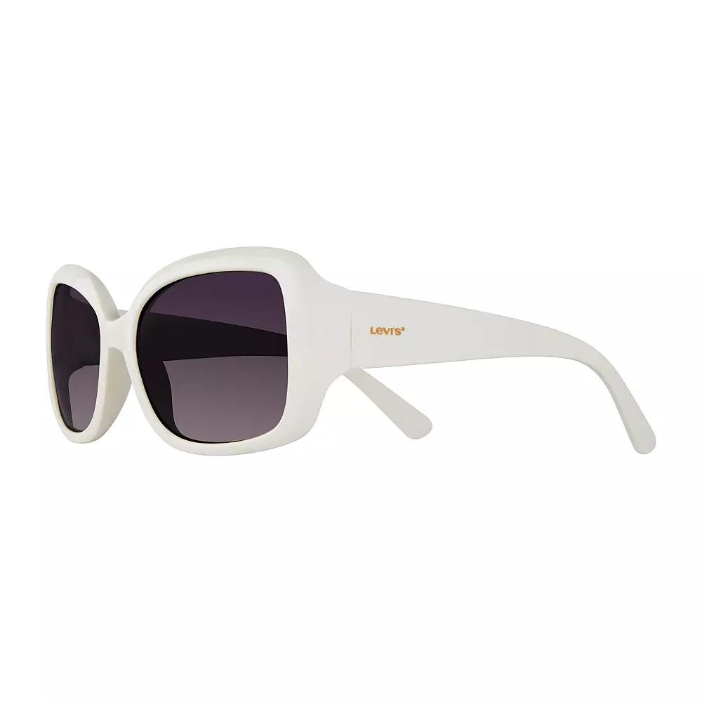These Womens Levis 56mm Fashion Large Oval Sunglasses are excellent. These Womens Levis 56mm Fashion Large Oval Sunglasses are excellent. DETAILS Plastic frame material Fade frame color Standard hinges Polycarbonate lens material Brown lens color Gradient lens treatment ImportedFIT DETAILS How do I find my frame size? Eye size: 56mm Bridge size: 18mm Temple size: 130mm Oval silhouette Size: One Size. Color: White. Gender: female. Age Group: adult.