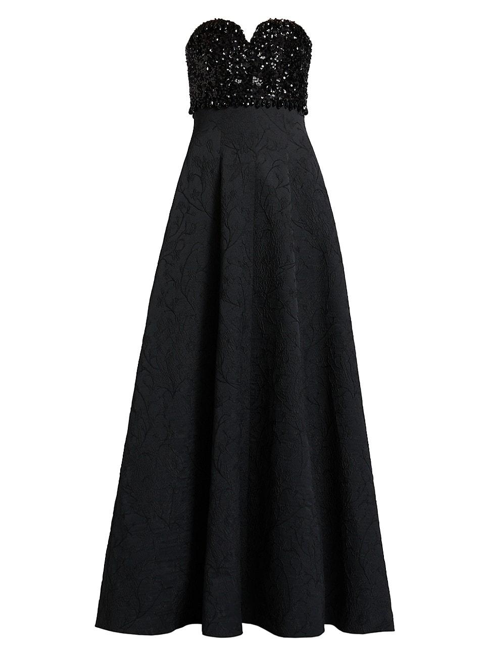 Sachin & Babis stunning Lillian ballgown showcases a shimmering sequined strapless sweetheart bust topping the jacquard cloche full skirt. Sweetheart neck Strapless Concealed back zip closure 94% polyester/6% nylon Lining: 100% polyester Dry clean Imported SIZE & FIT About 60 from topline to hem Model measurements: 510 tall Model is wearing a US size 4. Dress Collections - Contemporary Evening > Sachin & Babi > Saks Fifth Avenue > Barneys. Sachin & Babi. Color: Black. Size: 8.