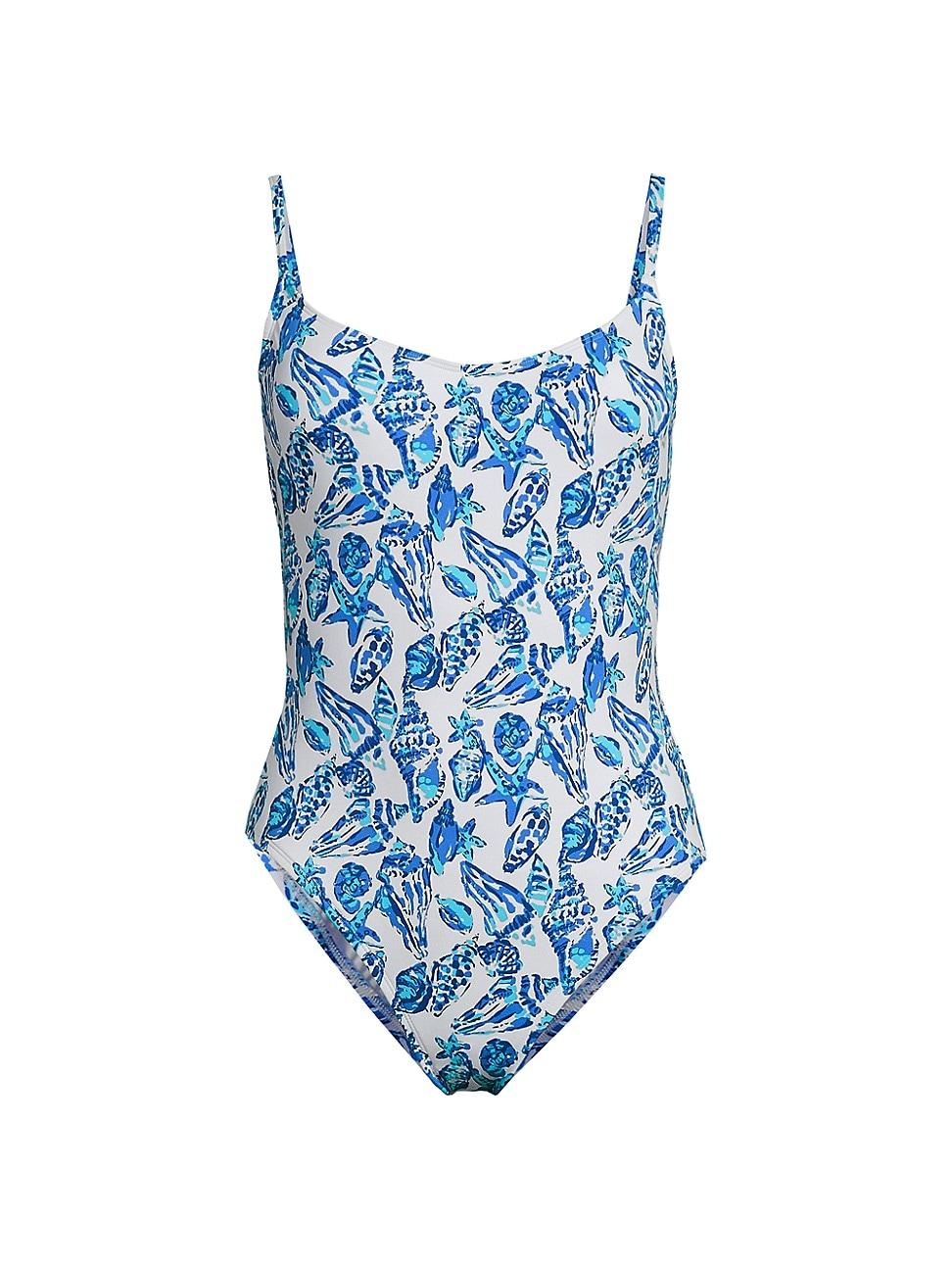 Lilly Pulitzers Lima shell print one-piece swimsuit showcases a deep scoopneck, adjustable straps, and charming bow accents at the back. Scoopneck Adjustable straps Moderate coverage Pulls on 75% nylon/25% spandex Hand wash Made in USA SIZE & FIT Model measurements: 510 tall Model is wearing a US size 4. Outerwear And Swimwear - Contemporary Swim > Lilly Pulitzer > Saks Fifth Avenue > Barneys. Lilly Pulitzer. Color: Resort White Shell Collector. Size: 14.