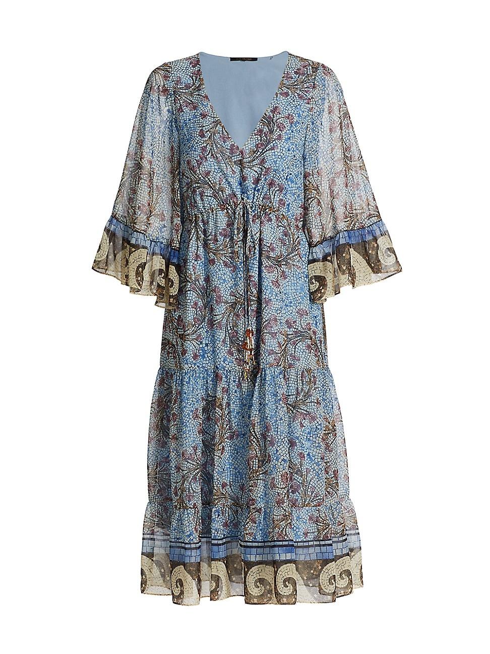 Crafted of lightweight chiffon, the Logan midi-dress from Kobi Halperin features a rosette tile-inspired print. This piece is designed with a plunging V-neck and three-quarter-length bell sleeves. V-neck Three-quarter-length bell sleeves Pulls over 100% polyester Dry clean Imported SIZE & FIT About 46.25 from shoulder to hem Model measurements: 510 tall Model is wearing a US size Small ABOUT THE BRAND With an extensive background in womens ready-to-wear, Israeli designer Kobi Halperin launched his eponymous line in 2015. Halperins collections evoke a sense of warmth with lively prints and cheerful use of color. Everyday pieces like dresses, blouses and trousers are elevated with luxe fabrics, handcrafted embellishments and intricate details. Modern Collections - Kobi Halperin > Kobi Halperin > Saks Fifth Avenue > Barneys. Kobi Halperin. Color: Skyline Multi. Size: Large.