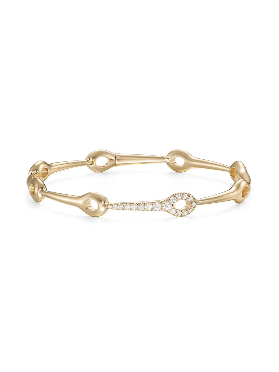 From the Lola Collection. Designed with a sculptural shape, Melissa Kayes Needle Linked bangle is crafted of 18K yellow gold and adorned with glittering diamonds. Diamonds, 0.24 tcw Diamond color: G+ Diamond clarity: VS1+ 18K yellow gold Slips on Made in USA SIZE About 6.5L. Fashion Jewelry - Fashion Designer > Melissa Kaye > Saks Fifth Avenue > Barneys. Melissa Kaye. Color: Yellow Gold.